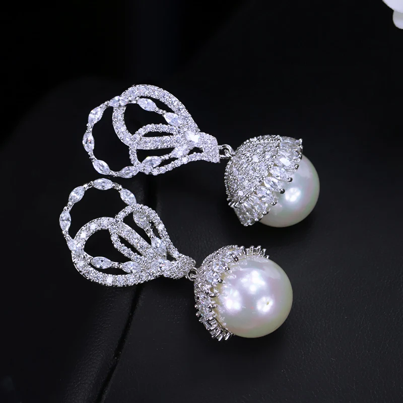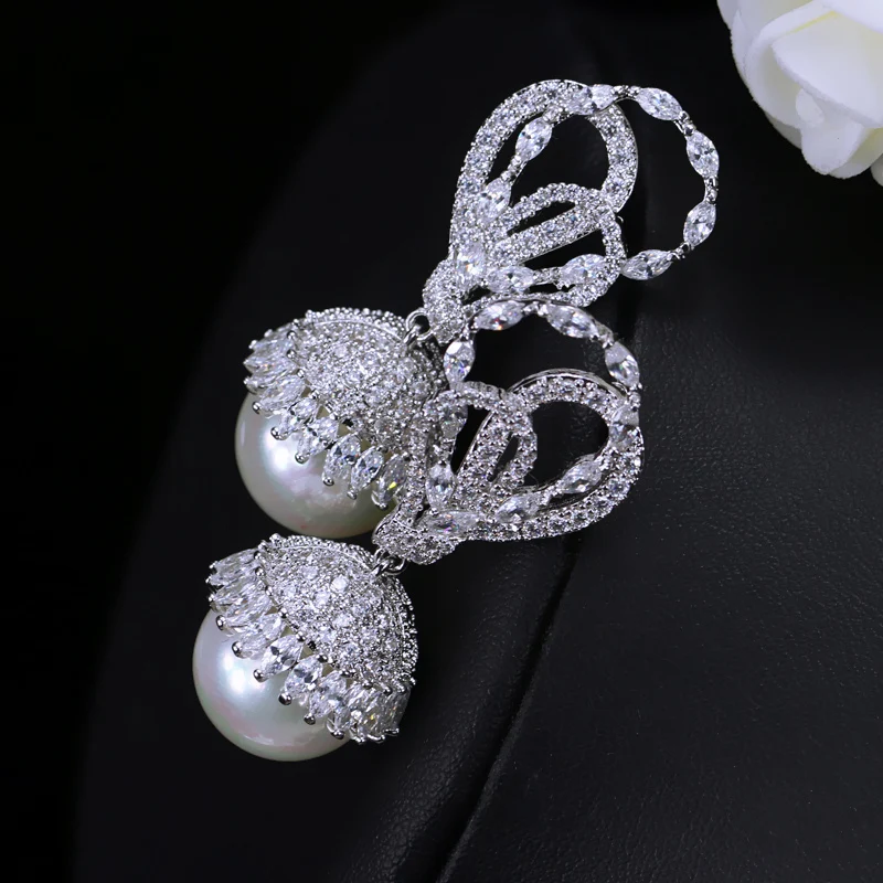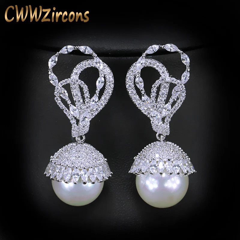 Special Offer CWWZircons элегантные круглые висячие серьги с большим жемчугом серебристого цвета с чешским камнем для женщин, ювелирные изделия, подарок CZ360 Discount 27% Today!