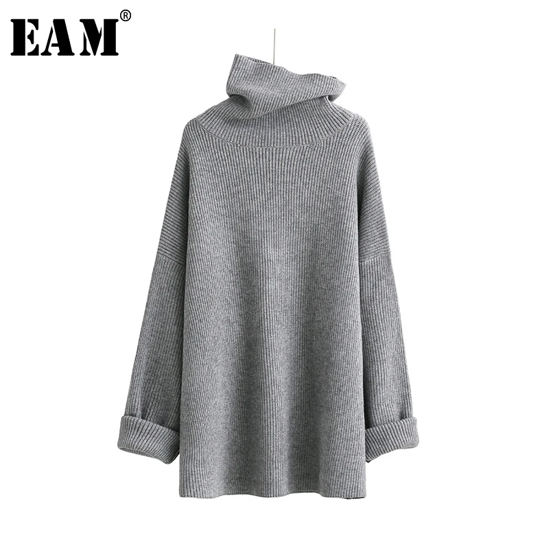 Special Offer [EAM] Новинка 2020, весенний теплый вязаный свитер с высоким воротником, длинным рукавом, однотонный, черный, серый, свободный, большой размер, Же... Discount 29% Today!