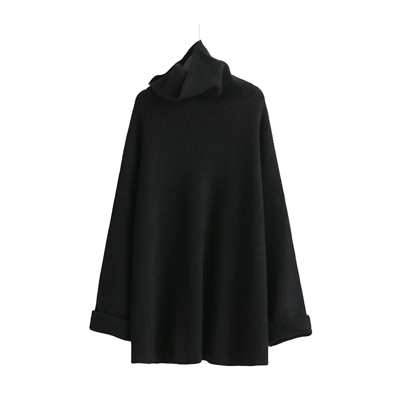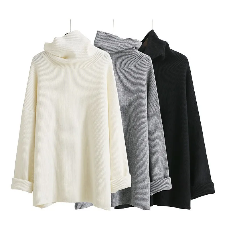 Product Name: [EAM] Новинка 2020, весенний теплый вязаный свитер с высоким воротником, длинным рукавом, однотонный, черный, серый, свободный, большой размер, Же...