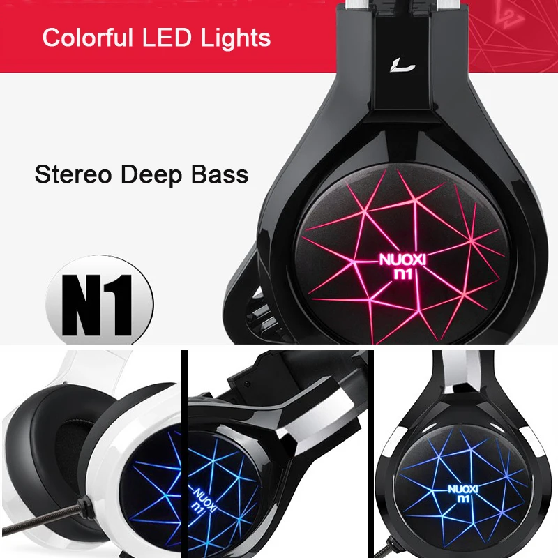 Product Name: NUOXI N1 стерео игровая гарнитура лучшие наушники для игры с глубокими басами наушники с микрофоном светодиодная подсветка для PS4 PC Xbox One