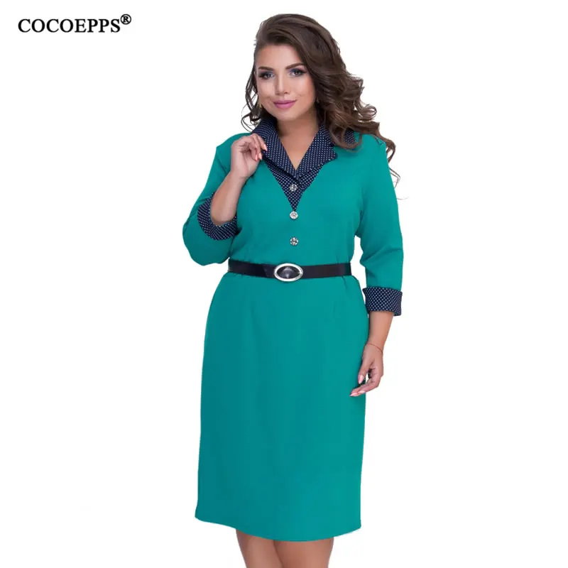 Special Offer Женское платье большого размера с v образным вырезом, элегантное офисное платье большого размера 5XL 6XL без пояса, Осень зима 2019 Discount 32% Today!