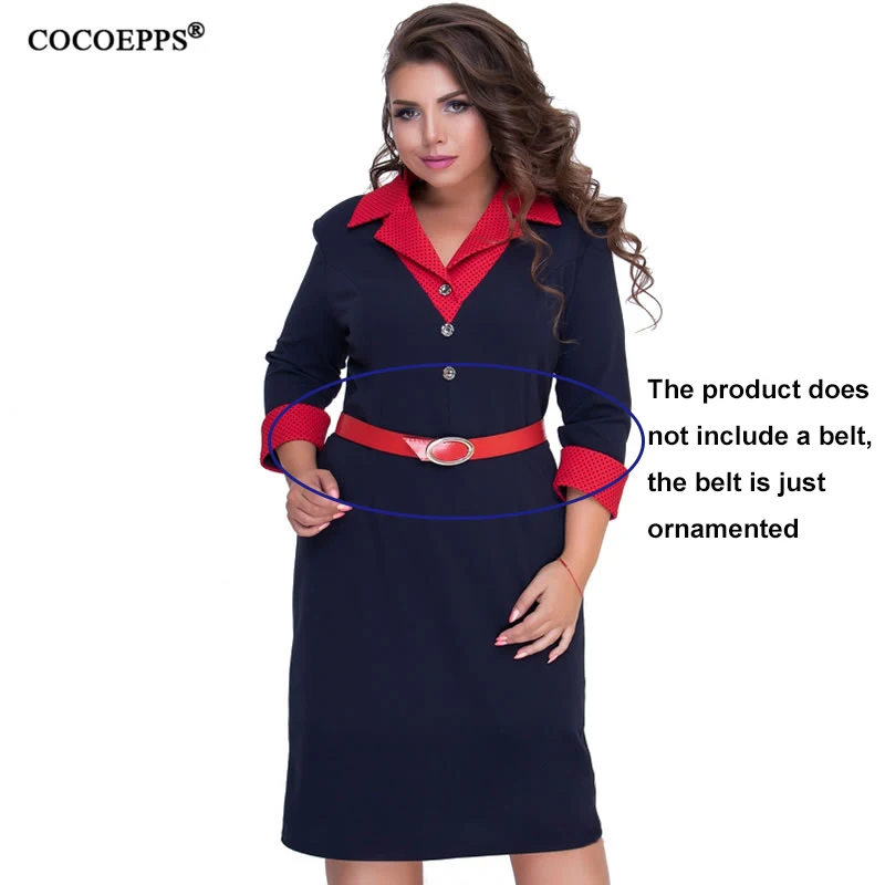 Product Name: Женское платье большого размера с v образным вырезом, элегантное офисное платье большого размера 5XL 6XL без пояса, Осень зима 2019