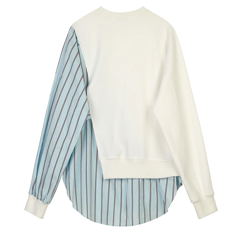 Product Name: [EAM] Свободная полосатая комбинированная цветная толстовка, новинка, круглый вырез, длинный рукав, женская мода, большой размер, Осень зима ...