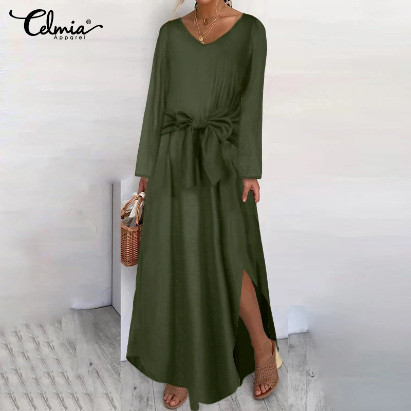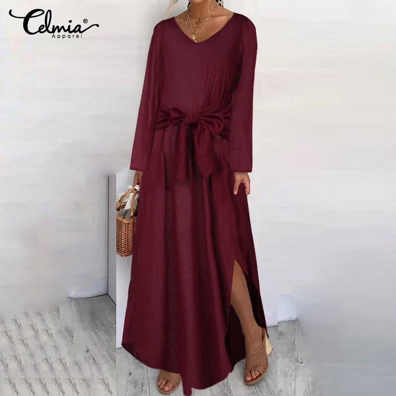 Special Offer Модное платье рубашка cellumia, осень 2019, женское сексуальное Длинное Макси платье с длинным рукавом и v образным вырезом, Повседневное платье с ... Discount 42% Today!