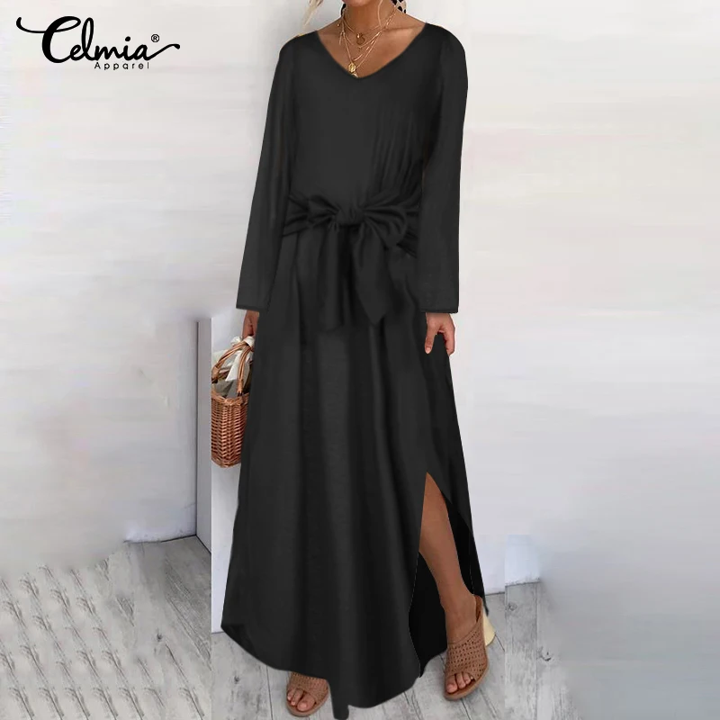 Product Name: Модное платье рубашка cellumia, осень 2019, женское сексуальное Длинное Макси платье с длинным рукавом и v образным вырезом, Повседневное платье с ...