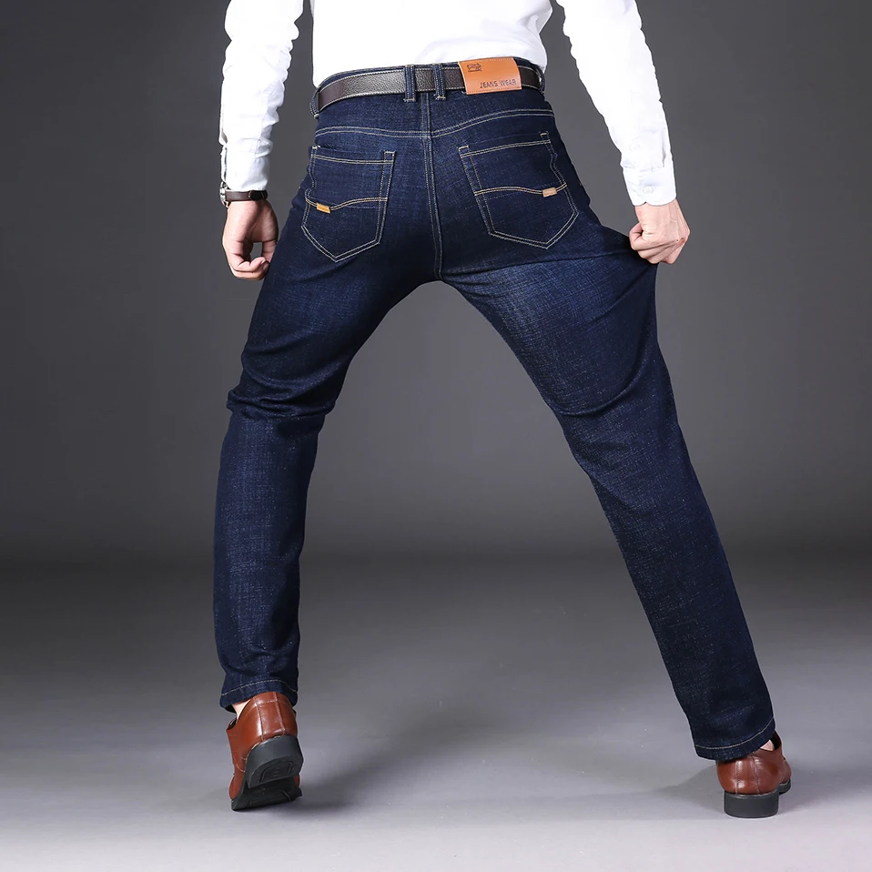 (43% Off) Купить NIGRITY 2019 осень зима мужские прямые повседневные джинсы модные джинсовые брюки синие и темно синие Большие размеры 29 44 Продажа Дешево