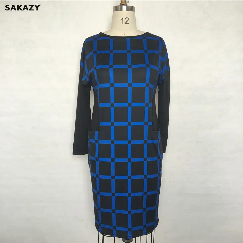 (46% Off) Купить Большой размер 6xl модное женское осеннее платье с карманами 2017 женская одежда больших размеров зимнее повседневные клетчатые офисны... Продажа Дешево