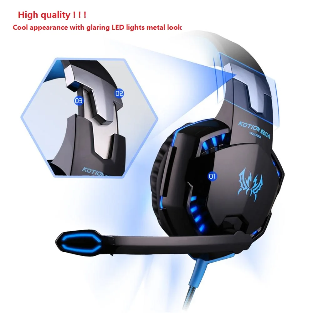 Product Name: G2000 компьютерные Стерео Игровые наушники лучшие шлем глубокий бас игра наушники гарнитура с микрофоном LED свет для Xiaomi для нового X BOX