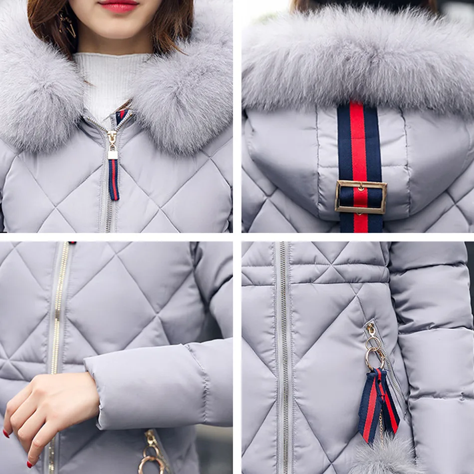Product Name: Большой мех зимнее пальто утолщенная парка женское стеганое тонкое длинное зимнее пальто пуховик из хлопка Дамская пуховая парка пуховик д...