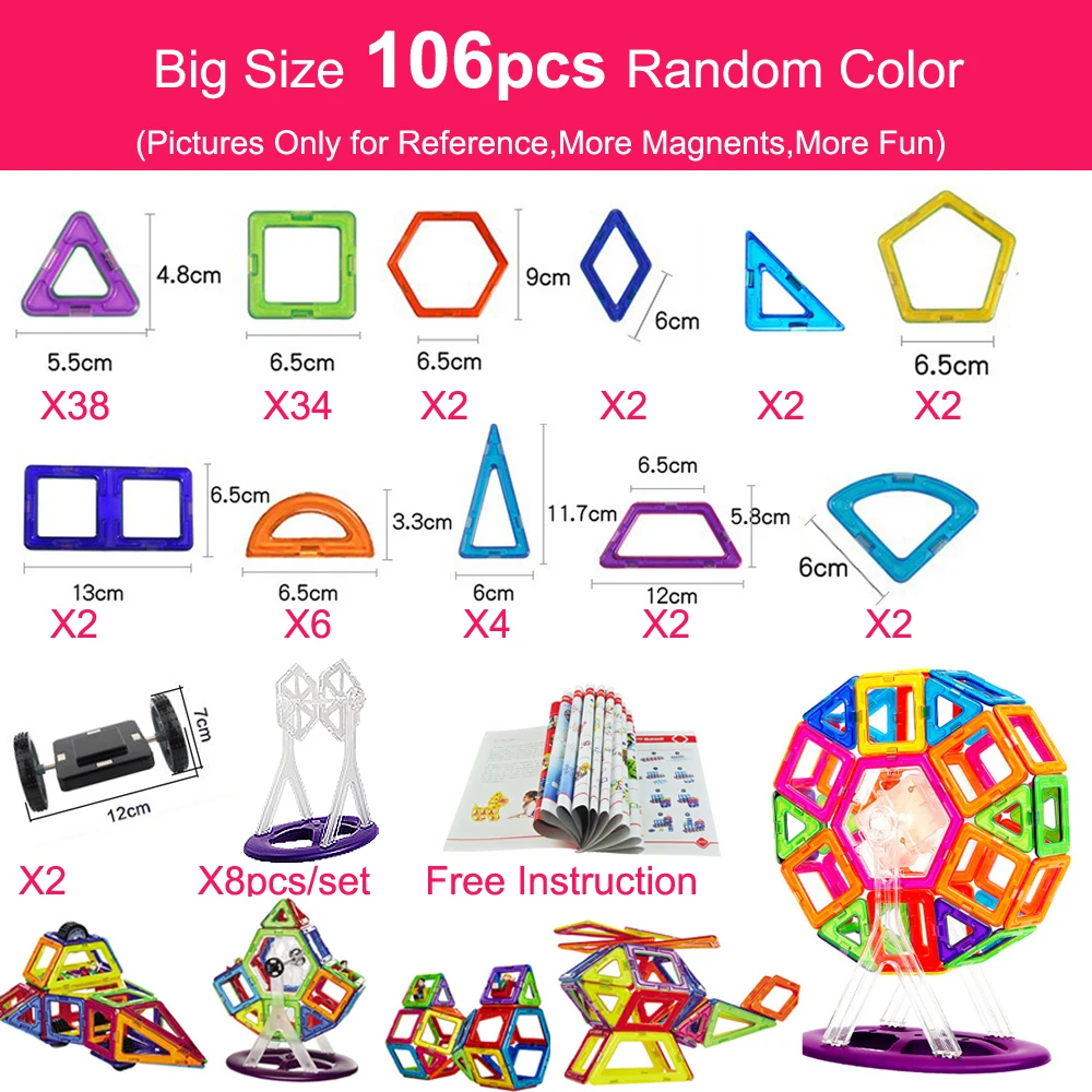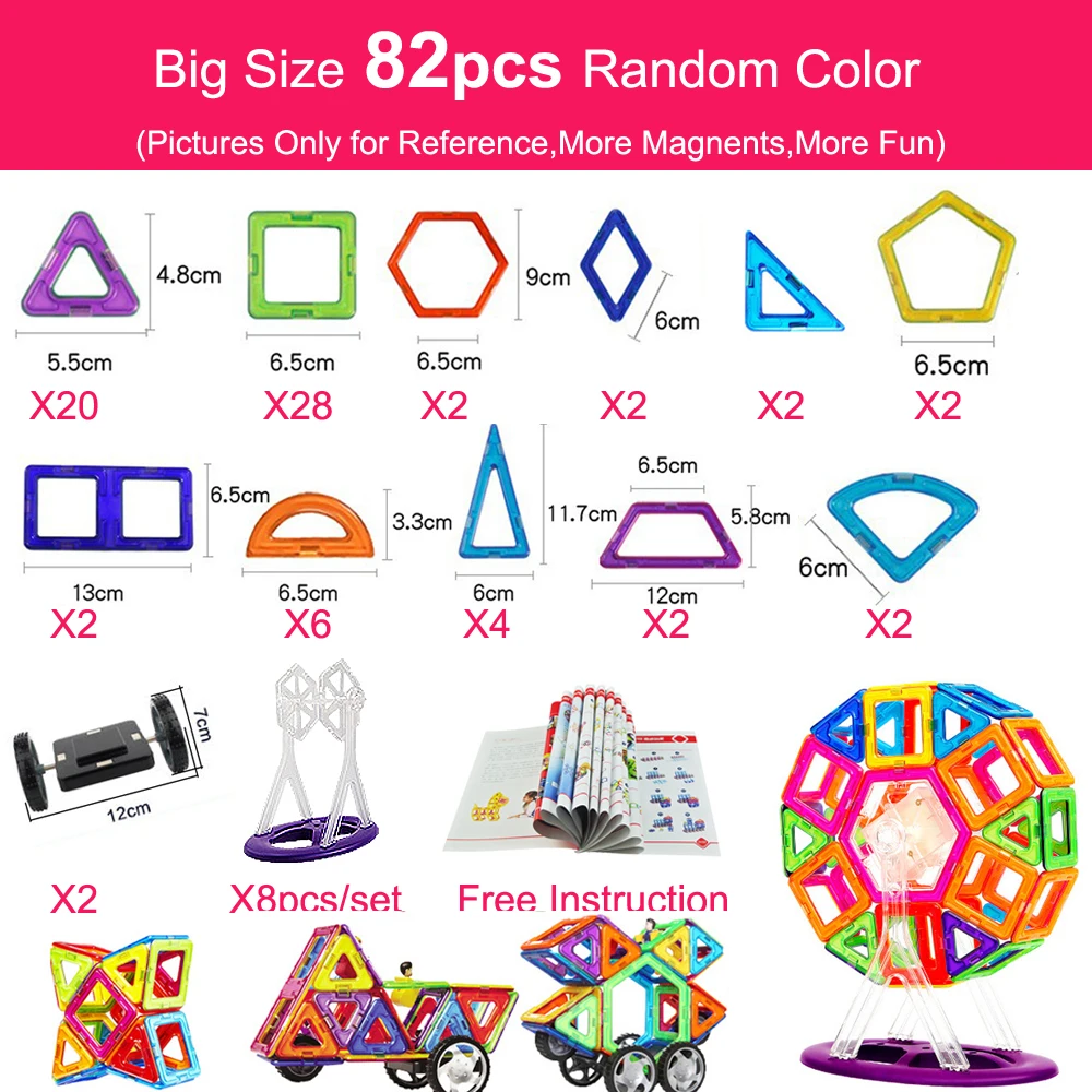 Product Name: 82 шт. большой размер Магнитный дизайнерский Строительный набор модель конструкторская игрушка магнитные строительные блоки Развивающие и...