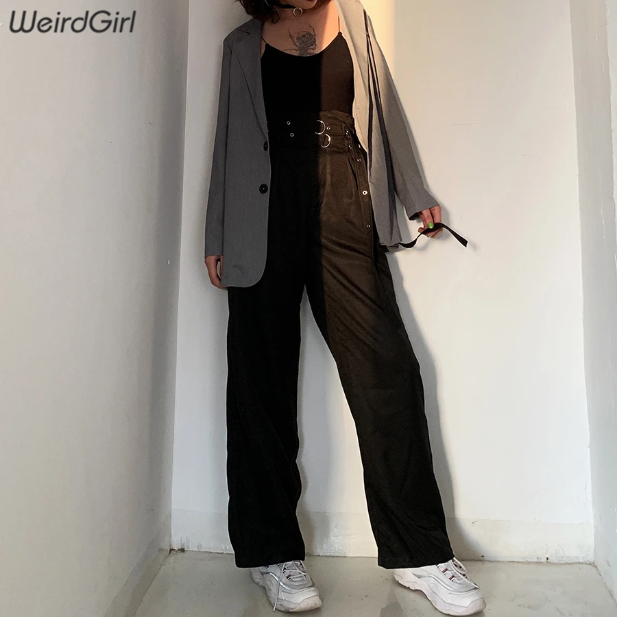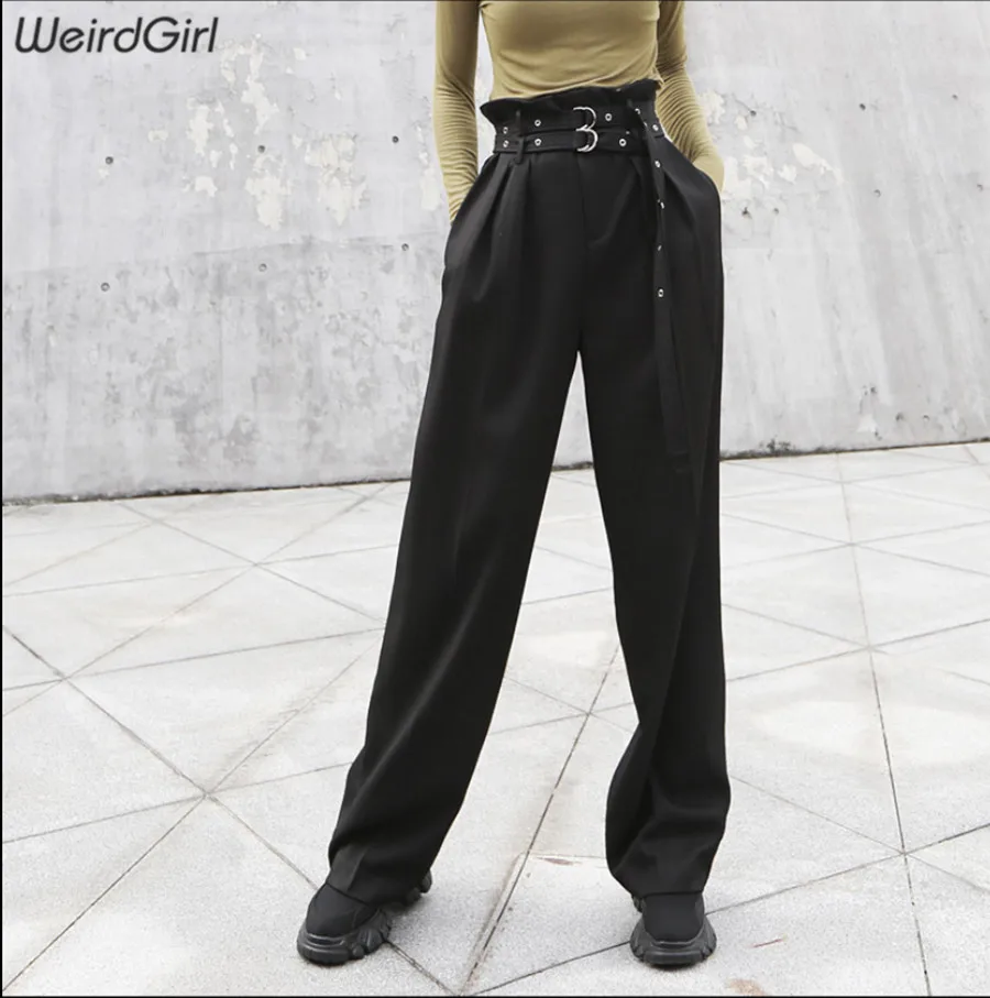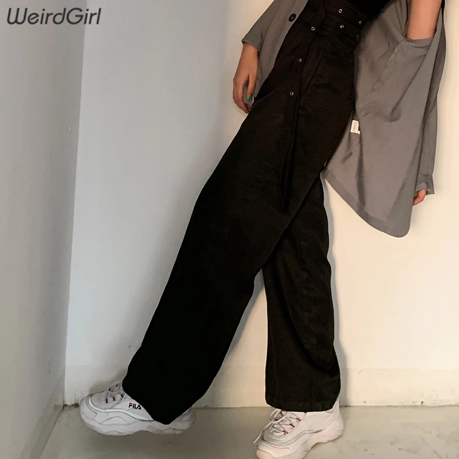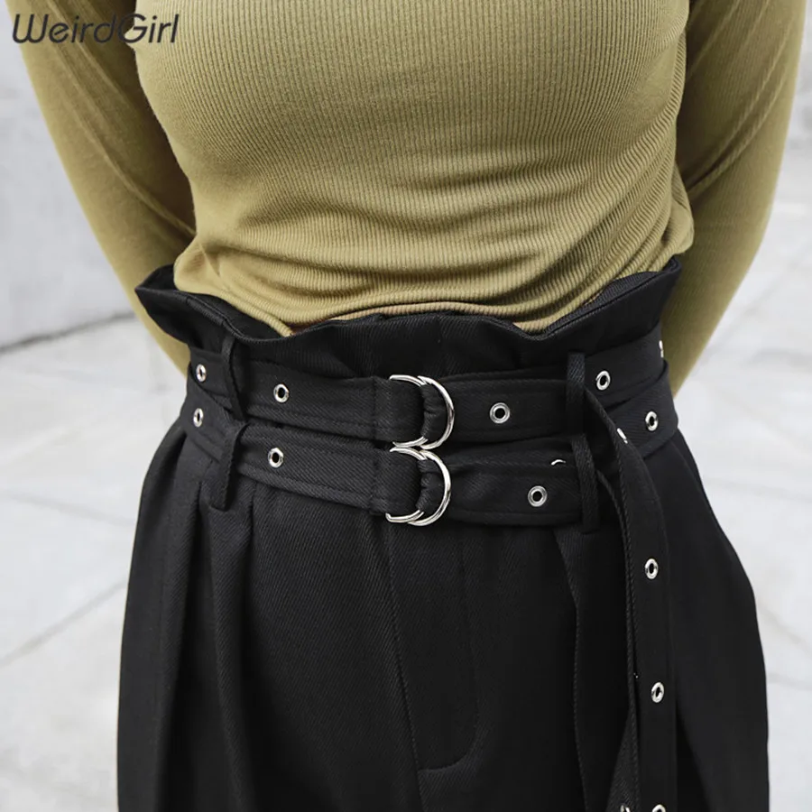 Special Offer Weirdgirl Женские повседневные широкие брюки двойной пояс с высокой талией свободные брюки уличная Женская Нижняя Женская Брюки крутая Осенняя... Discount 51% Today!