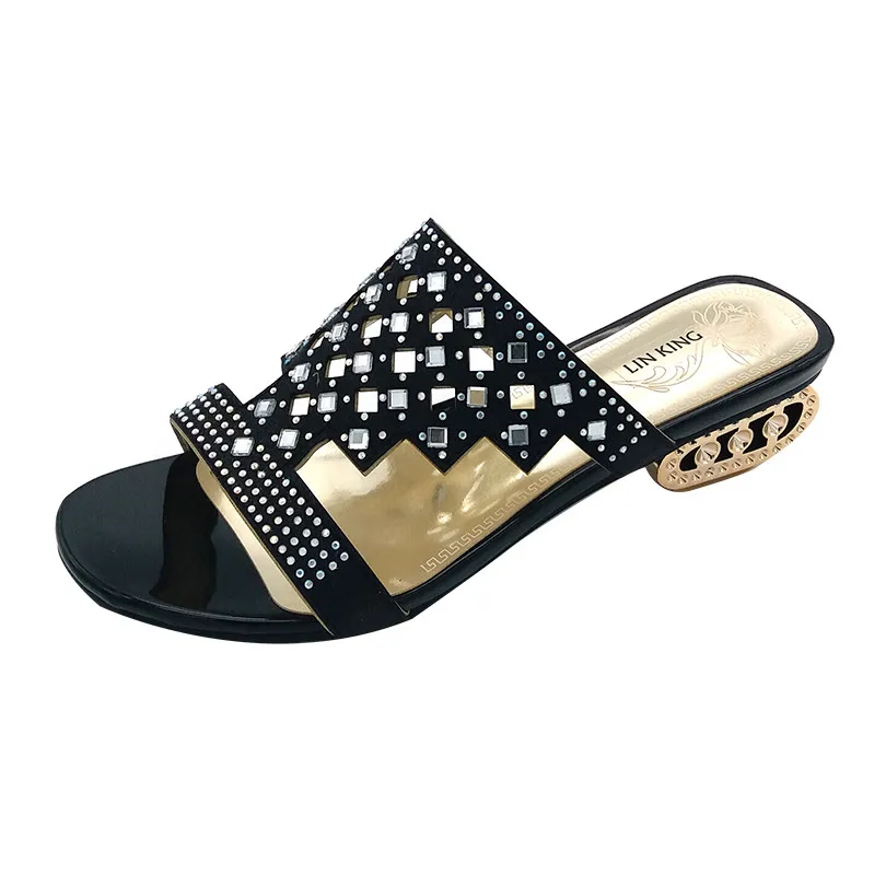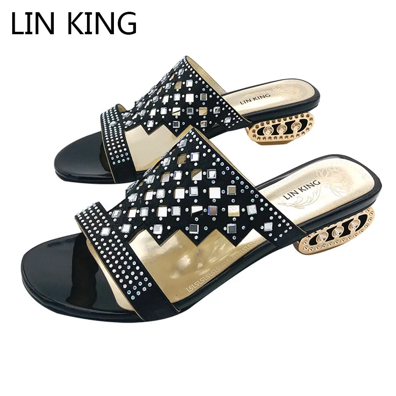 Product Name: LIN KING модные женские ботинки в новом дизайне пирсинг Стразы Для женщин шлепанцы в богемном стиле блестящие шлепанцы без задника с открытыми ...