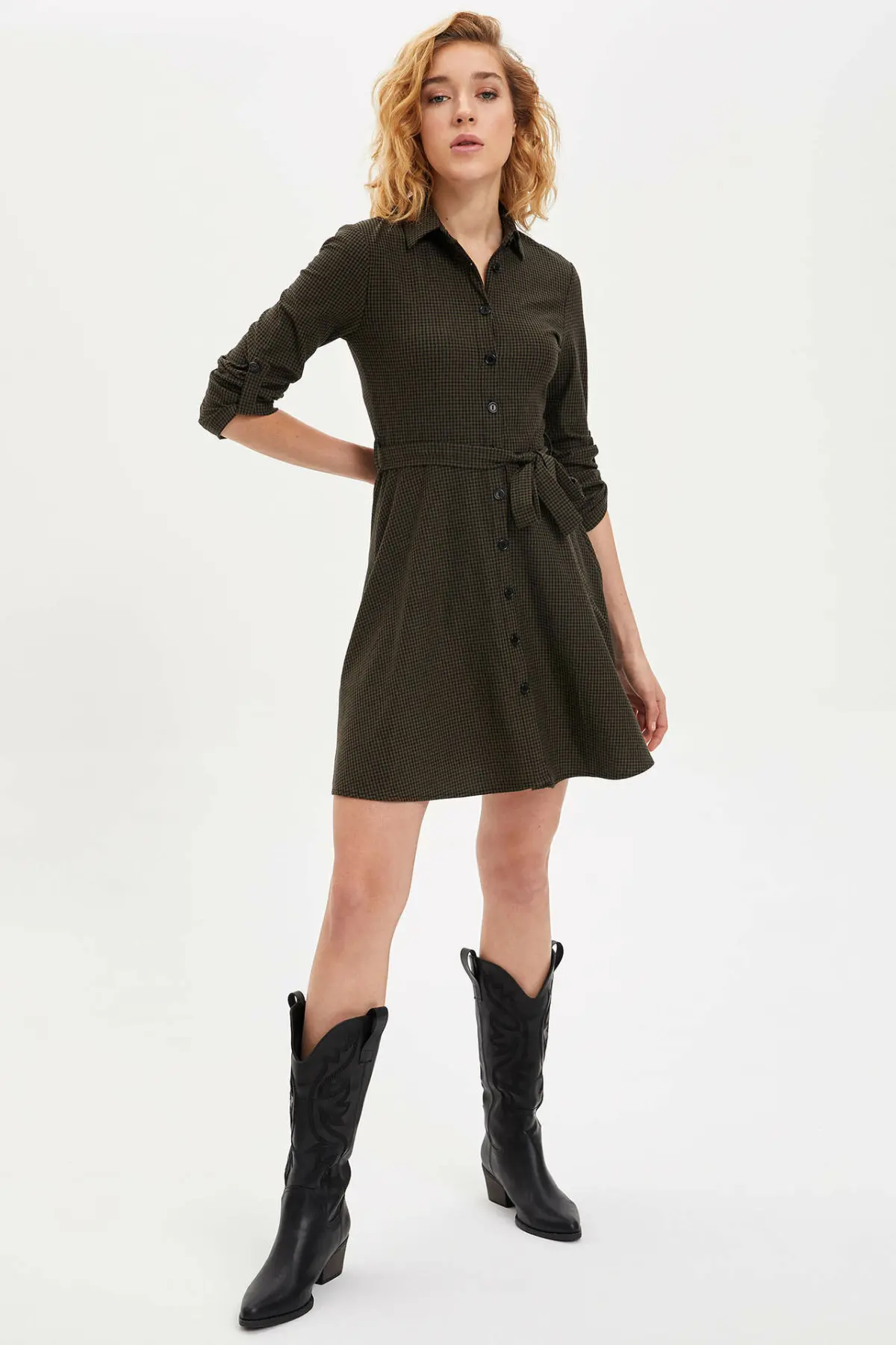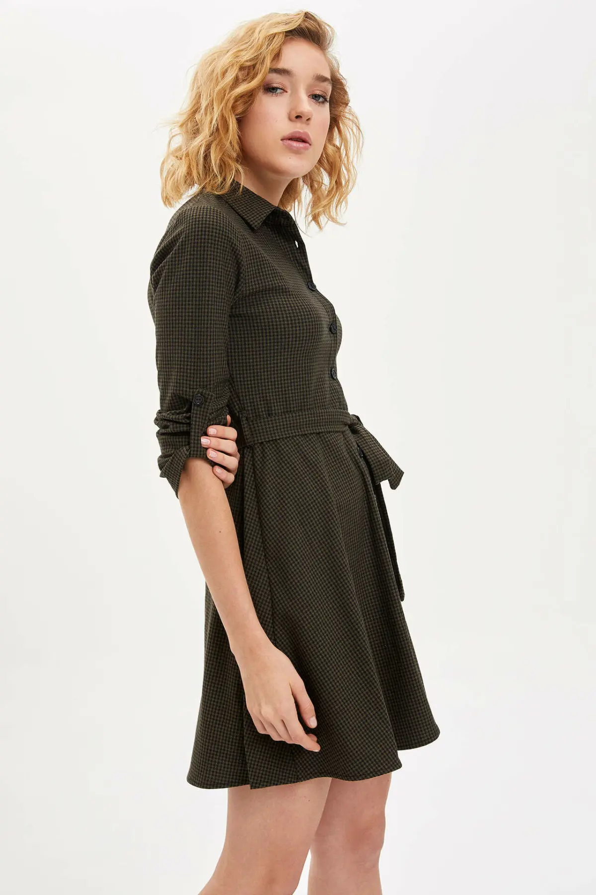 Special Offer DeFacto, модные тонкие плиссированные платья с отворотом, Дамское элегантное платье с поясом, женская повседневная одежда высокого качества, о... Discount 58% Today!