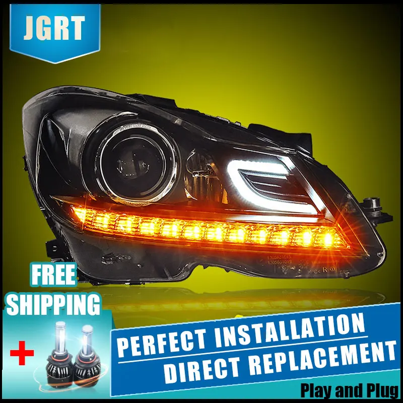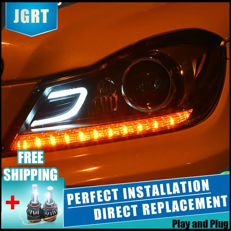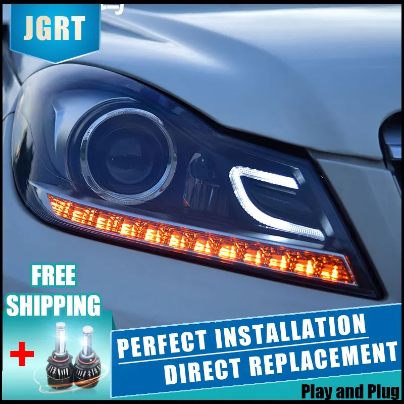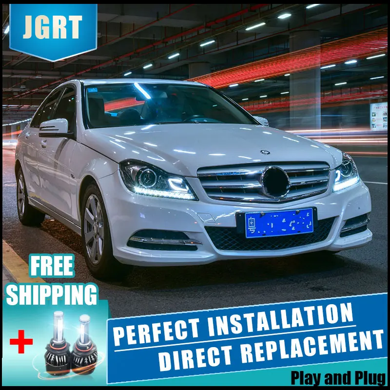 Product Name: 2 шт. светодиодные фары для Benz W204 2011 2013 Автомобильные светодиодные фары двойные ксеноновые линзы автомобильные аксессуары дневные ходовые о...