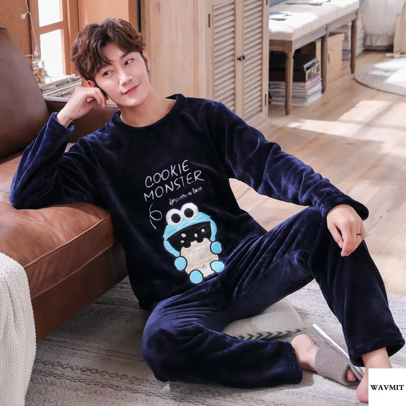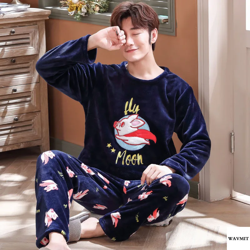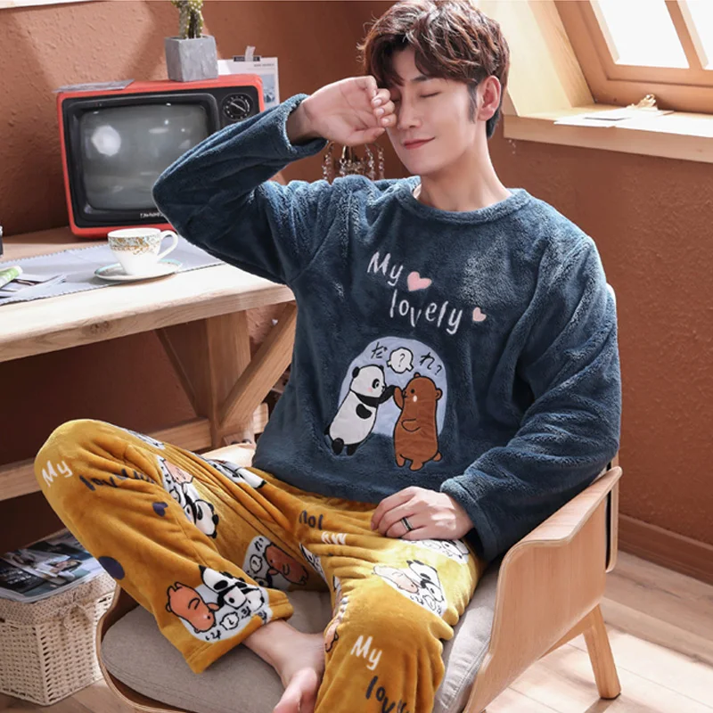 Special Offer Большие размеры 3XL 4XL 5XL, мужские пижамы, зимняя Фланелевая пижама, коралловый флис, Толстая Повседневная Домашняя одежда, теплая одежда для с... Discount 24% Today!