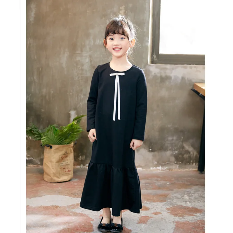 Product Name: Повседневное черное Хлопковое платье макси с длинными рукавами для девочек подростков, со съемным штифтом, на возраст от 3 до 16 лет, осенне з...
