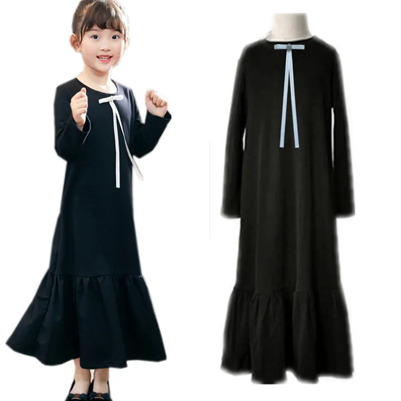 (30% Off) Купить Повседневное черное Хлопковое платье макси с длинными рукавами для девочек подростков, со съемным штифтом, на возраст от 3 до 16 лет, осенне з... Цена Дешево