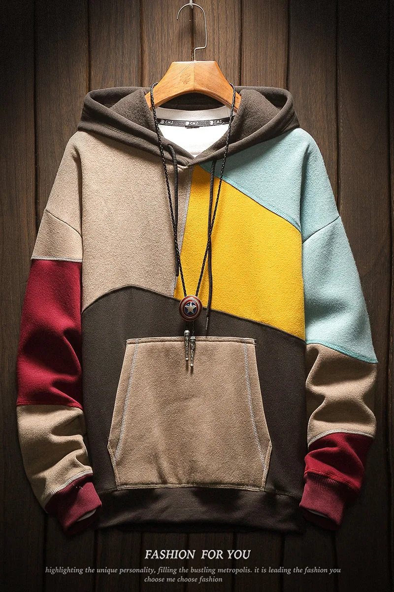 Product Name: Мужская толстовка с капюшоном, мужской пуловер с цветными блоками, лучшее качество, новинка 2019, модные мужские толстовки с капюшоном в японс...