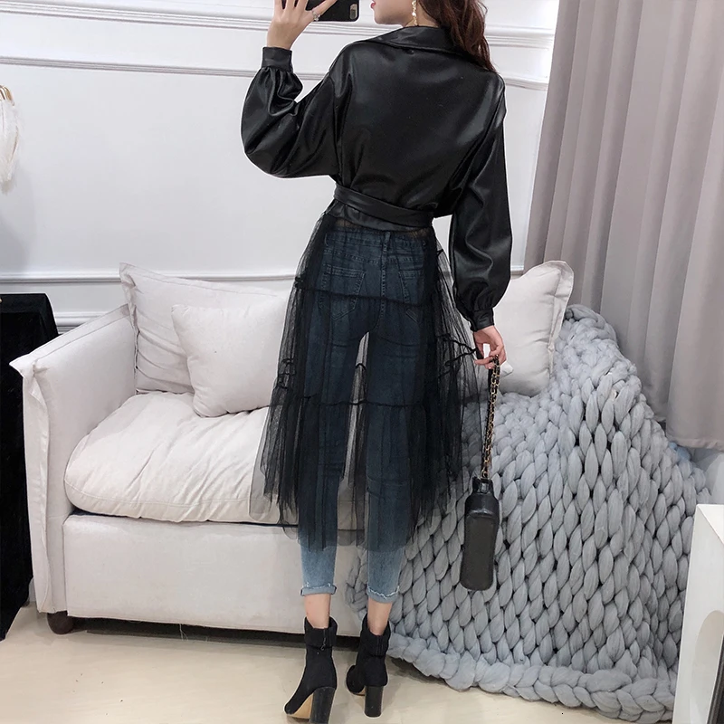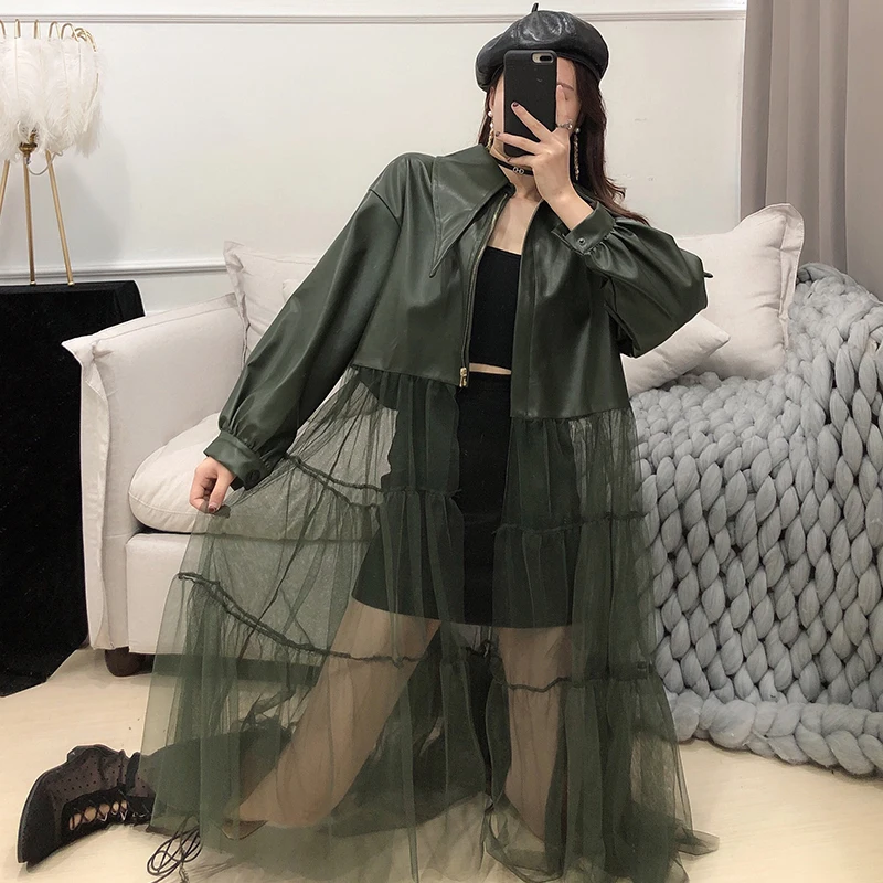 Product Name: LANMREM 2020 новые весенние куртки Женское модное однотонное длинное Сетчатое Марлевое Стеганое пальто из искусственной кожи с поясом для женщи...