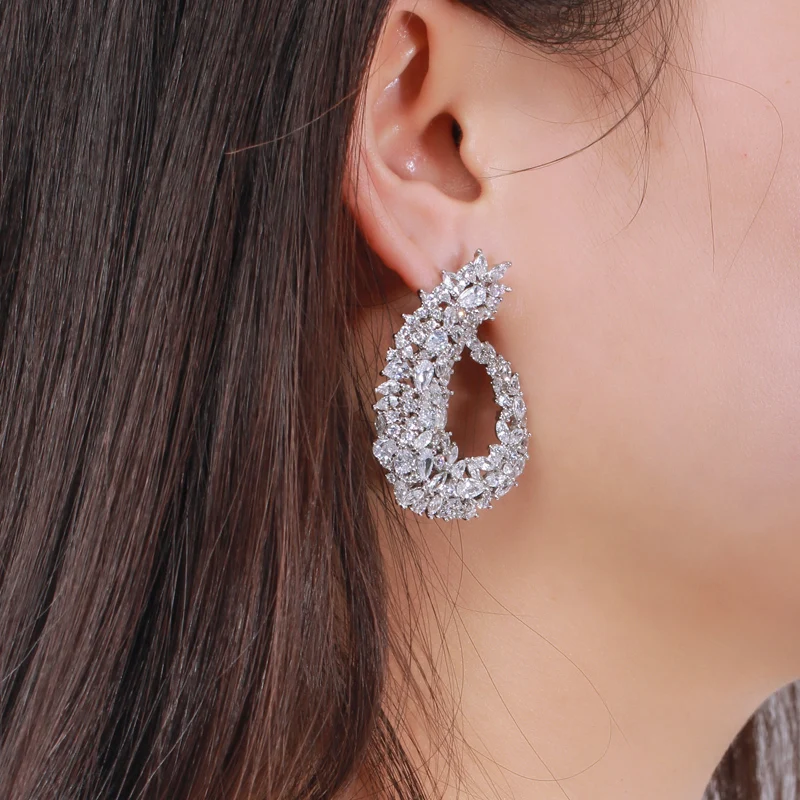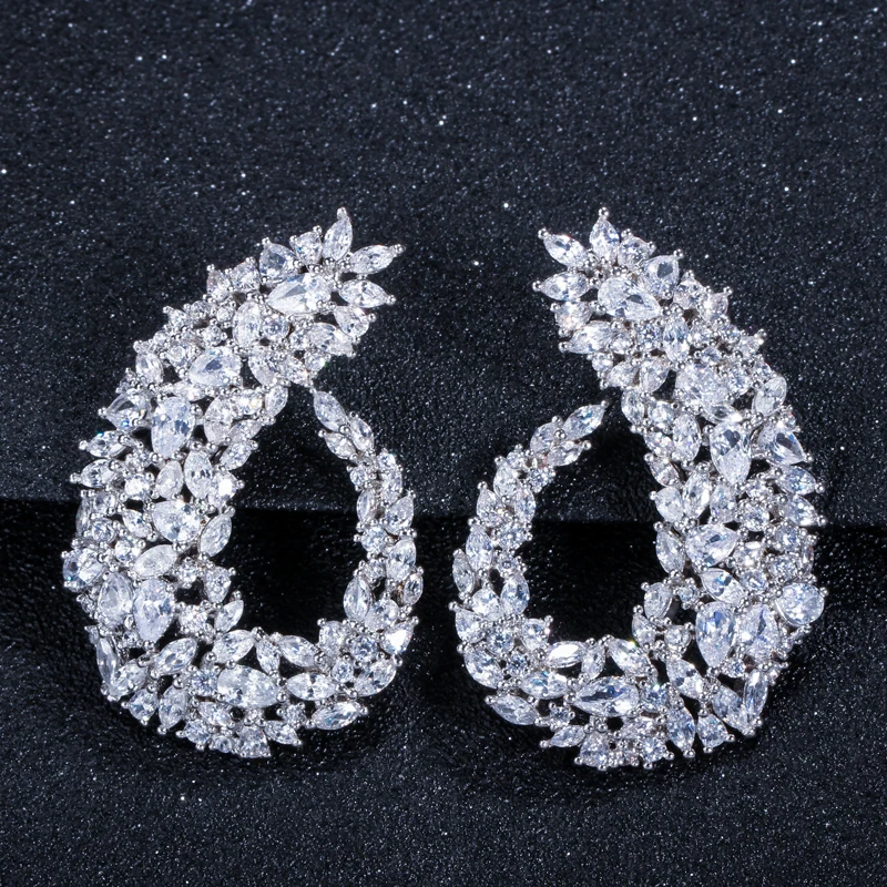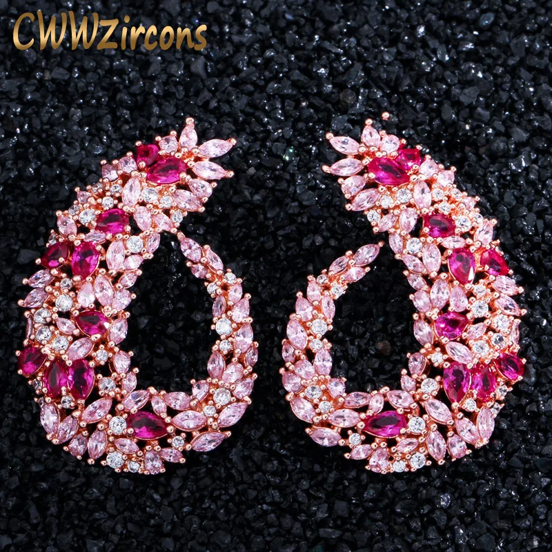 (34% Off) Купить CWWZircons розовое золото Роскошные популярные Геометрические цветы многоцветные кубические циркониевые большие свадебные серьги Модные Знам... Цена Дешево