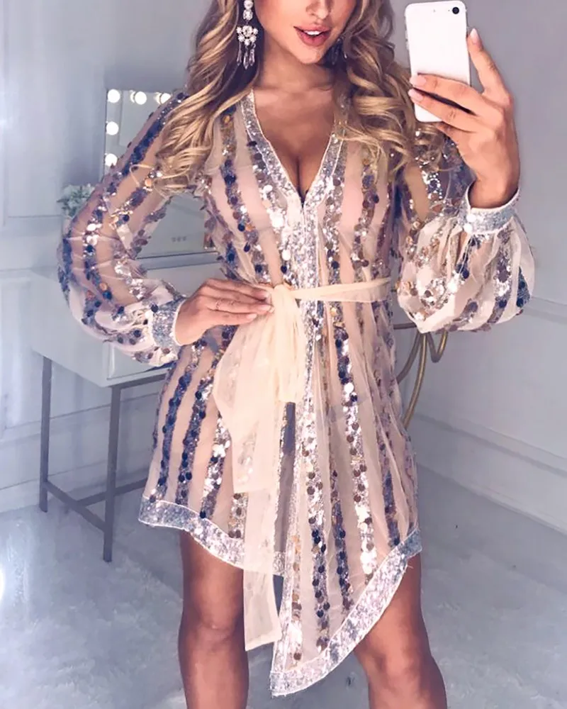 Special Offer Блестящее прозрачное Сетчатое платье фонарь с глубоким вырезом, женское сексуальное мини платье с глубоким v образным вырезом, вечерние Клу... Discount 39% Today!