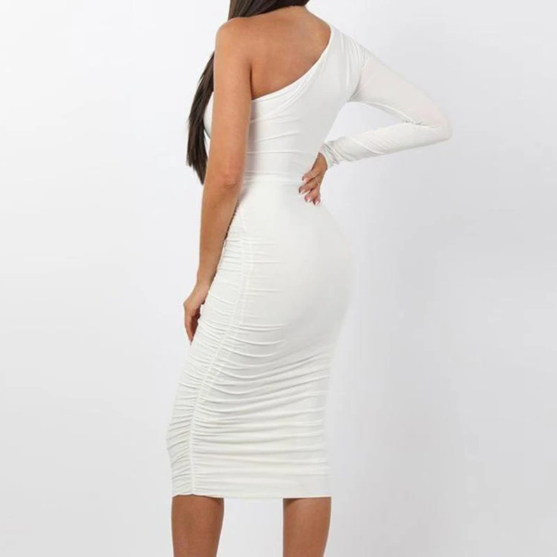 Special Offer Женское элегантное модное сексуальное белое коктейльное облегающее платье на одно плечо с поясом и рюшами, облегающее платье миди Discount 40% Today!