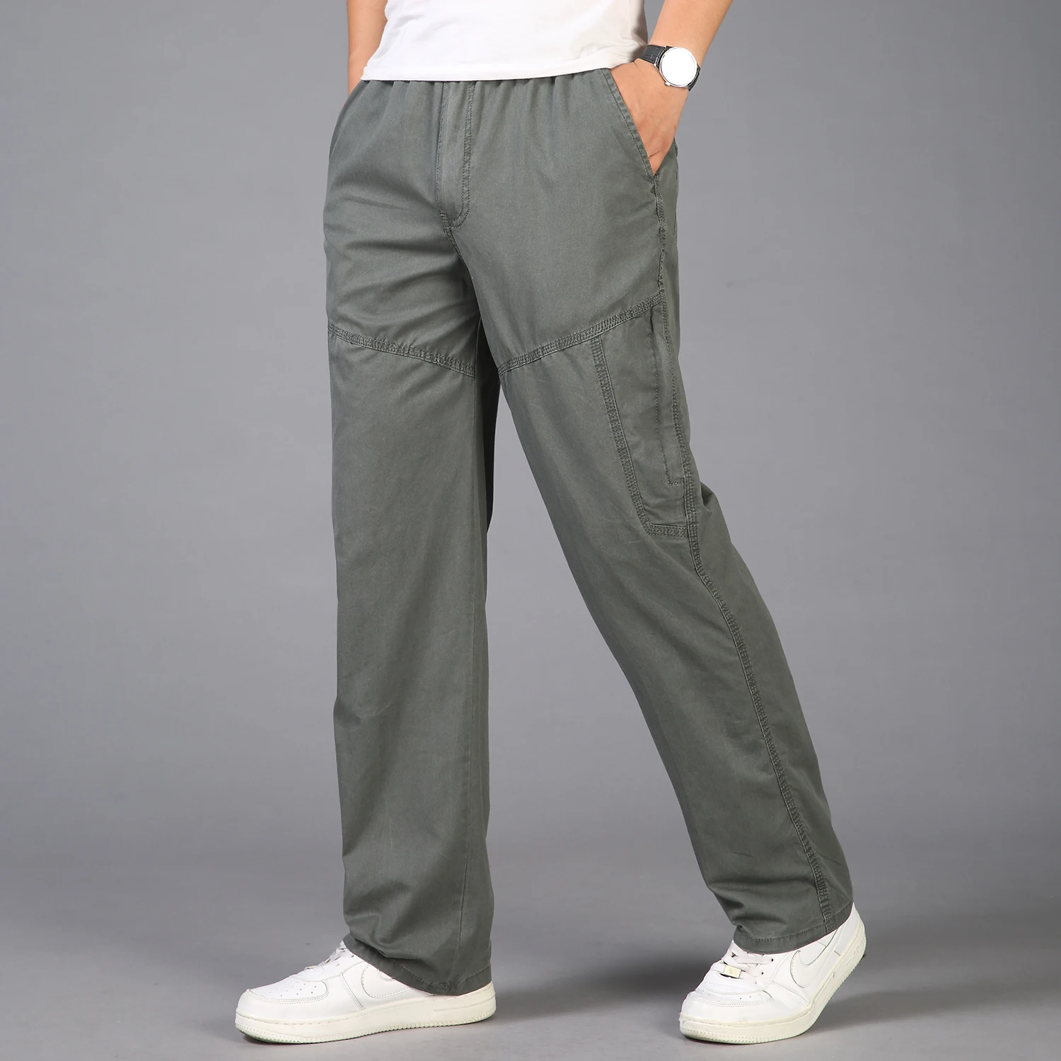 Special Offer Мужские брюки карго, Повседневные Дышащие брюки большого размера 5XL с карманами, летние прямые длинные брюки для мужчин, 2019 Discount 45% Today!