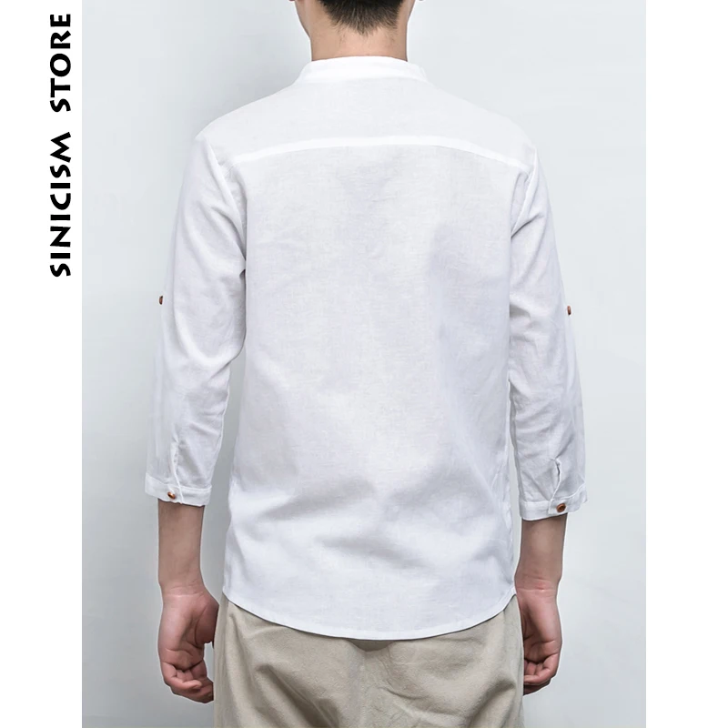 Product Name: Мужская хлопковая льняная рубашка Sinicism Store, Однотонная рубашка с рукавом три четверти в китайском стиле, рубашка с v образным вырезом, большо...