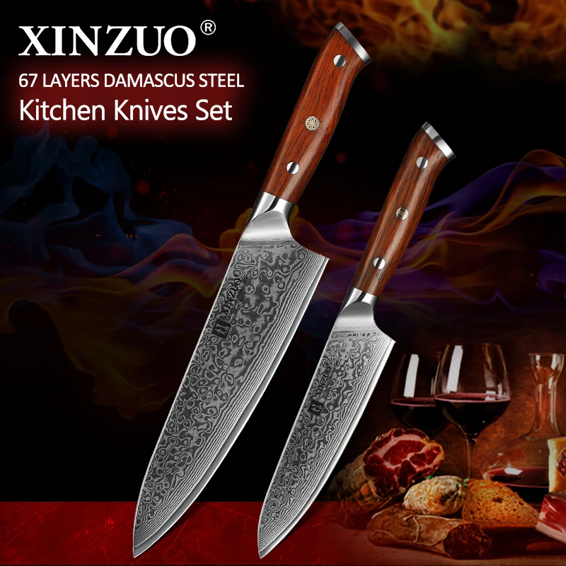 Product Name: XINZUO 2 шт. набор кухонных ножей для шеф повара Япония VG10 Дамасская сталь ножи для повара Палисандр Ручка лучшее качество кухонные инструменты...