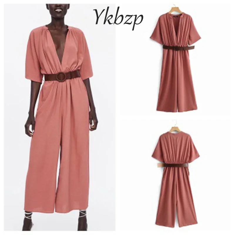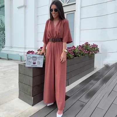 Special Offer Женский комбинезон, однотонный Повседневный пляжный комбинезон с коротким рукавом и v образным вырезом, сексуальный длинный комбинезон с п... Discount 5% Today!