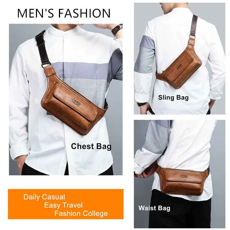 Product Name: Мужская поясная сумка JEEP BULUO, повседневная Функциональная сумка с ремнем для телефона, мужская и женская сумка на ремне, кожаная сумка на бед...