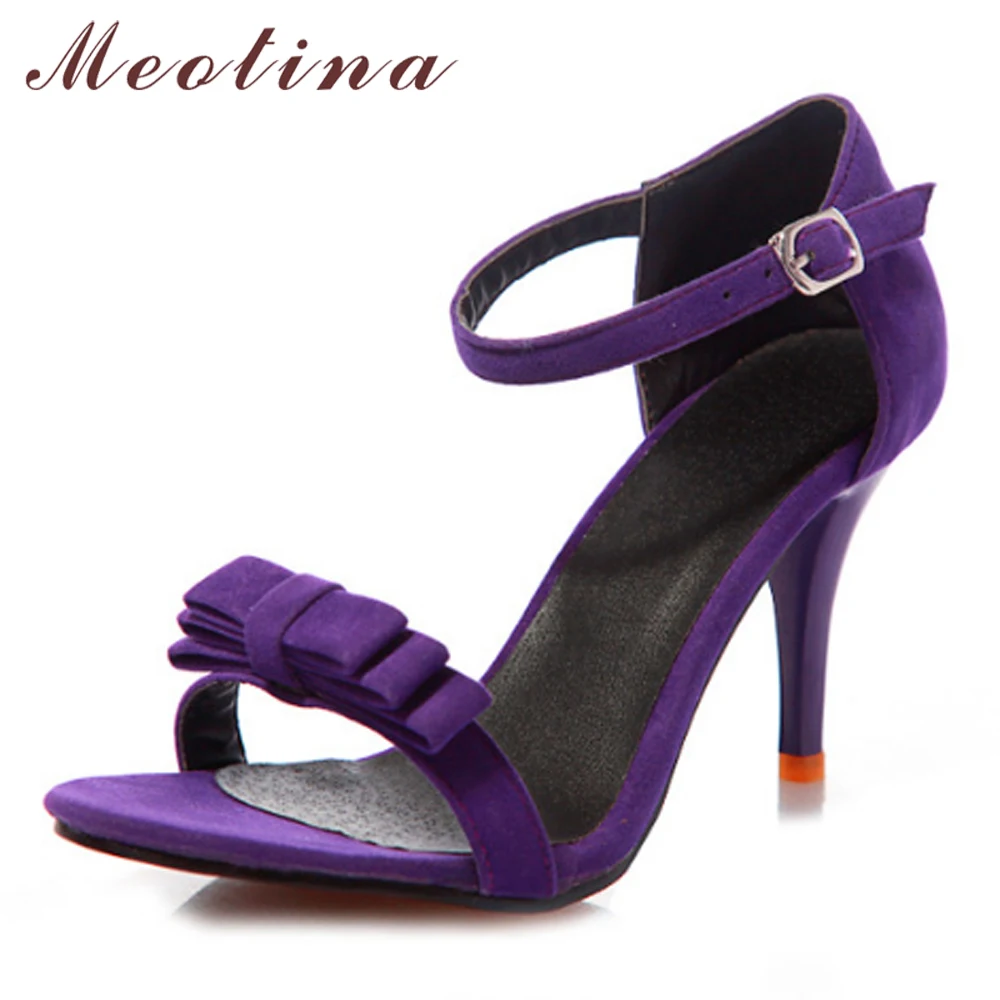 Special Offer Meotina обувь женские босоножки летние туфли на высоком каблуке с ремешком на щиколотке женские сандалии с бантом фиолетовые, зеленые, черные т... Discount 54% Today!