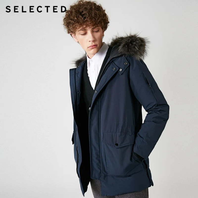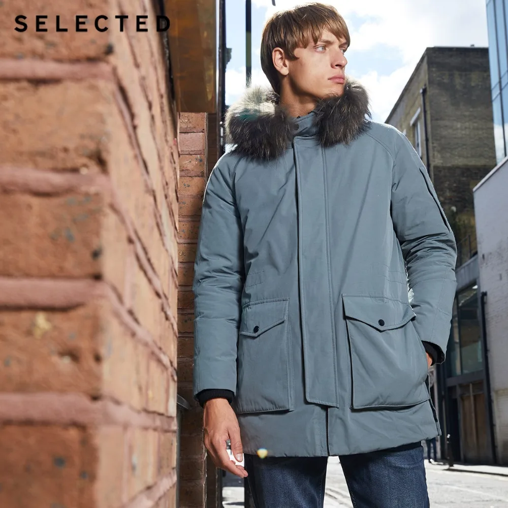 (73% Off) Купить Отборная Мужская зимняя парка с воротником из меха енота, пуховик, теплая длинная одежда большими карманами, пальто средней длины S | 418412535 Продажа Дешево