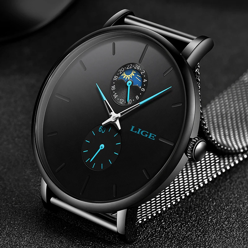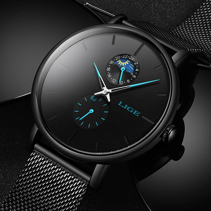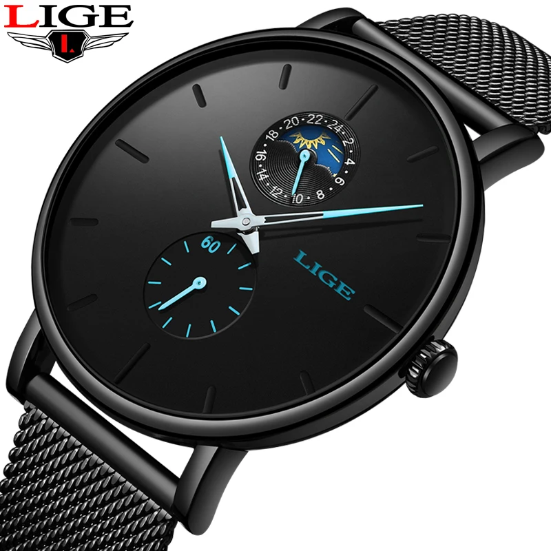 Product Name: Мужские наручные часы LIGE, повседневные тонкие водонепроницаемые кварцевые часы с ремешком и сеткой, новинка 2019