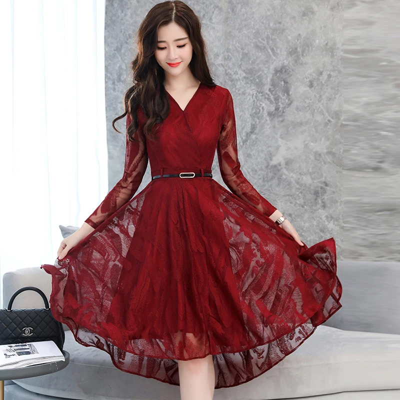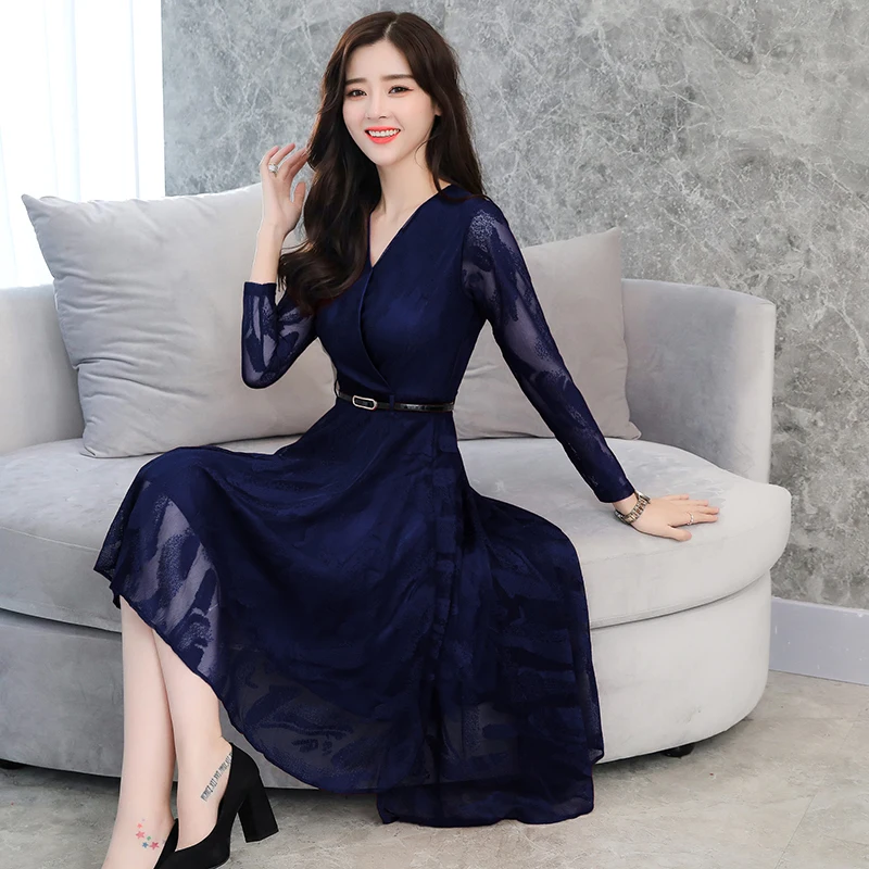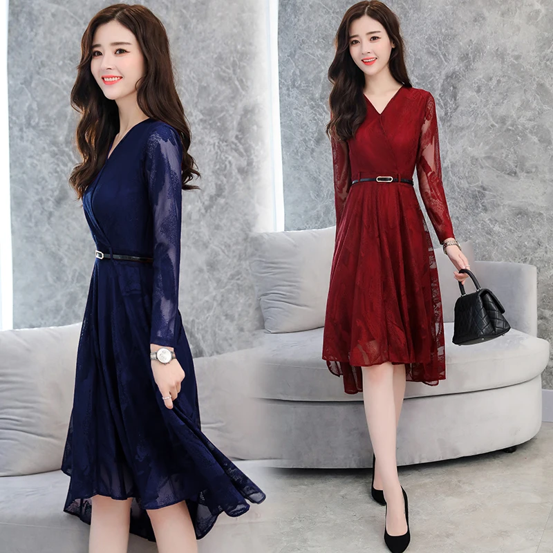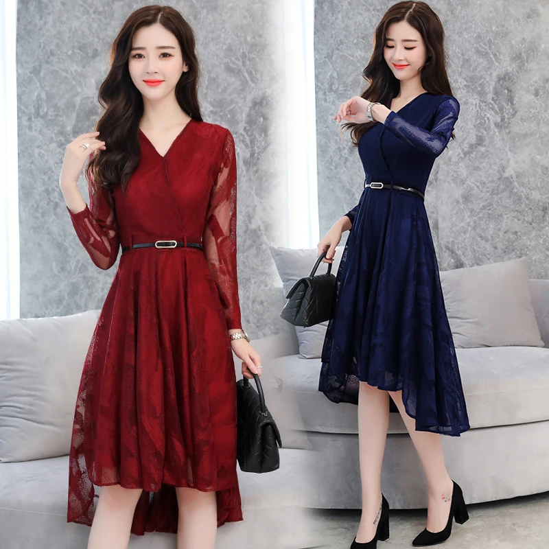 Special Offer 2018 новая весенняя модная женская одежда с v образным вырезом, ажурное платье с вышивкой, асимметричное кружевное платье с длинным рукавом и ... Discount 0% Today!