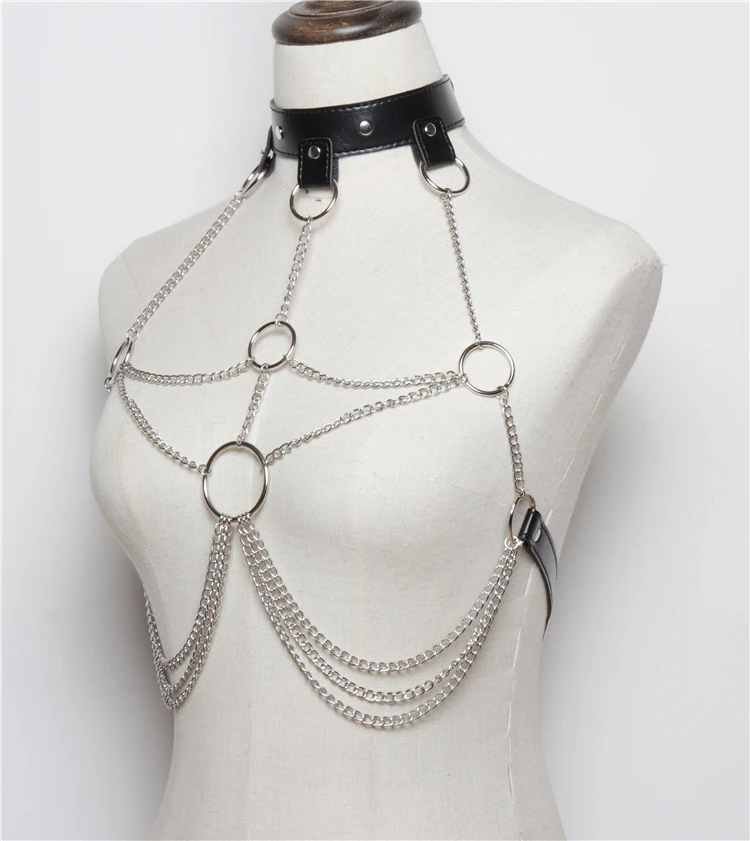(10% Off) Купить 2019 кожа портупея цепь ремень для Для женщин сексуальный топ с подвязками нагрудный панк готичный Лиф талии бюстгальтер портупеей с... Цена Дешево