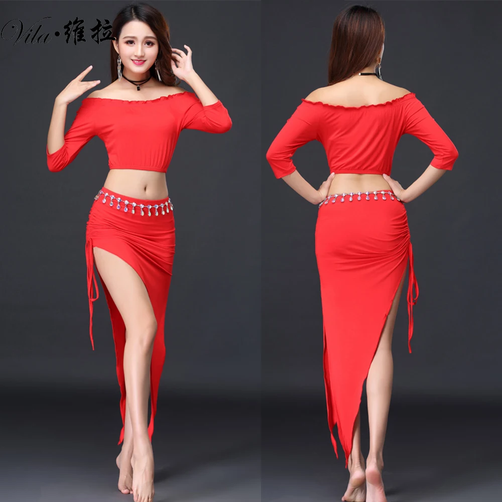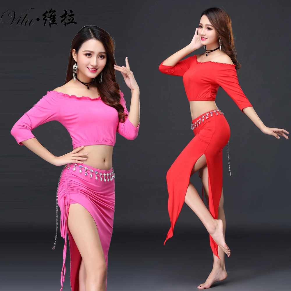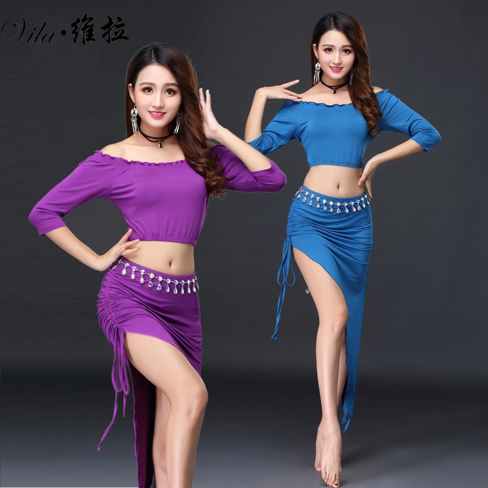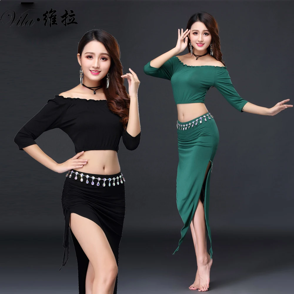 Special Offer Костюм для танца живота, топ с длинными рукавами + юбка + пояс для танцев, танцевальная ткань для индийского танца, 2019 Discount 11% Today!