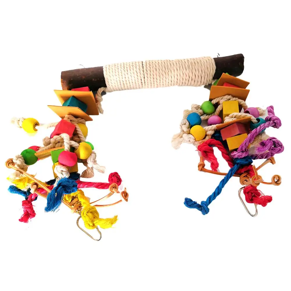 Product Name: Pet Bird жевательная игрушка для попугаев жердочка для птицы кожа Красочный Деревянный Строительный блок Хлопок Веревка большой конический ка...