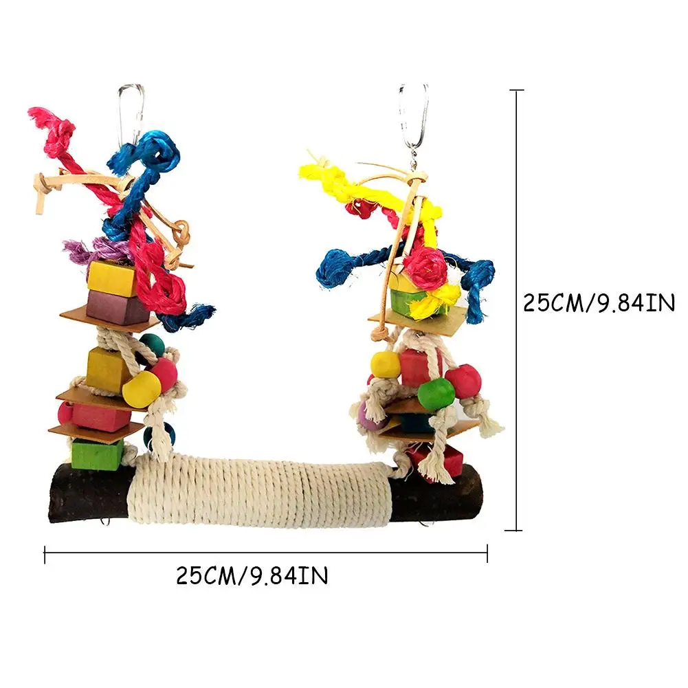 Special Offer Pet Bird жевательная игрушка для попугаев жердочка для птицы кожа Красочный Деревянный Строительный блок Хлопок Веревка большой конический ка... Discount 15% Today!