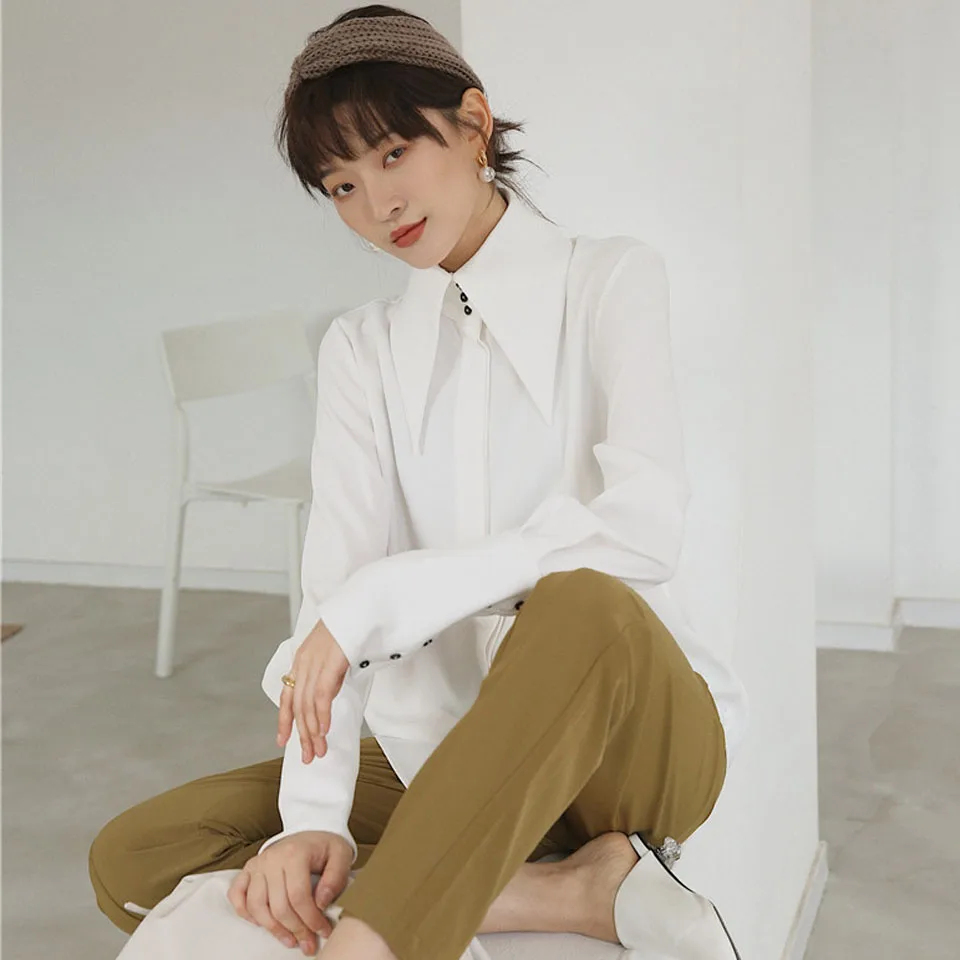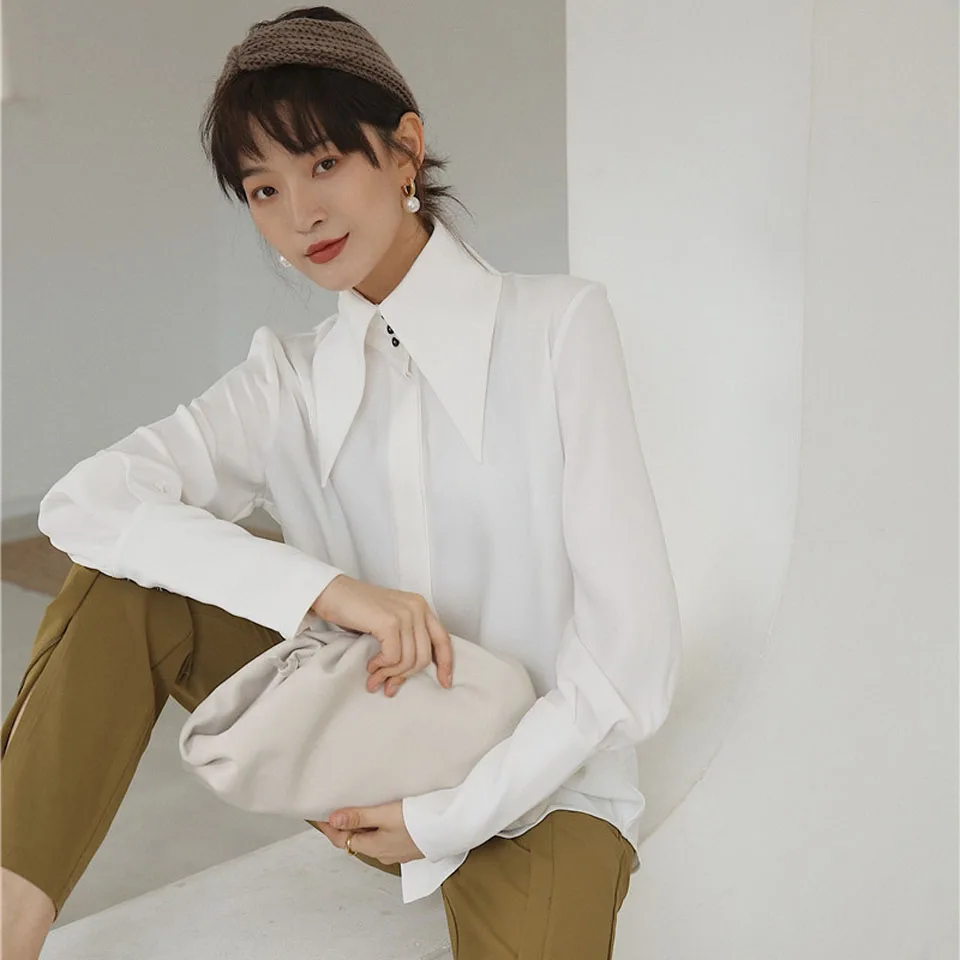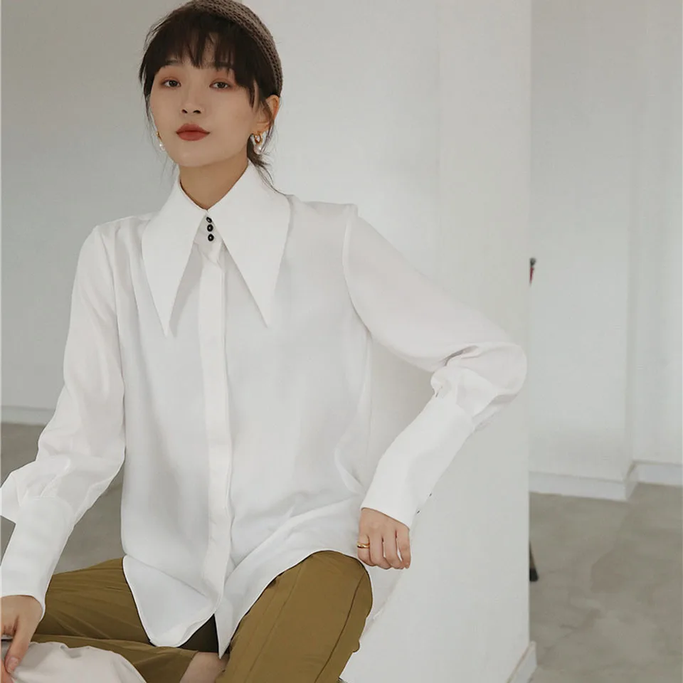 Special Offer Винтажное платье в английском стиле блузка 2019 Осень Белый Фонарь длинный рукав большой острый отворот простая удобная свободная рубашка дл... Discount 20% Today!