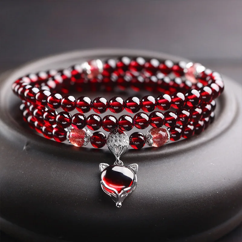 Product Name: Винно красные гранатовые браслеты для женщин, натуральный драгоценный камень, Стерлинговое Серебро 925 пробы, ювелирное изделие, лисичка, ты...