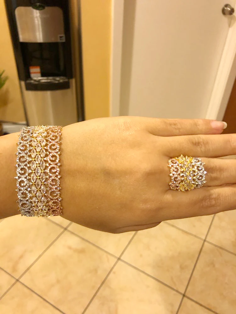 Special Offer MoonTree, роскошный, большой, нежный, 3 тона, смешанный, фианит, медь, геометрия, для вечеринки, свадьбы, Саудовской Аравии, Арабский Браслет в дуба... Discount 23% Today!