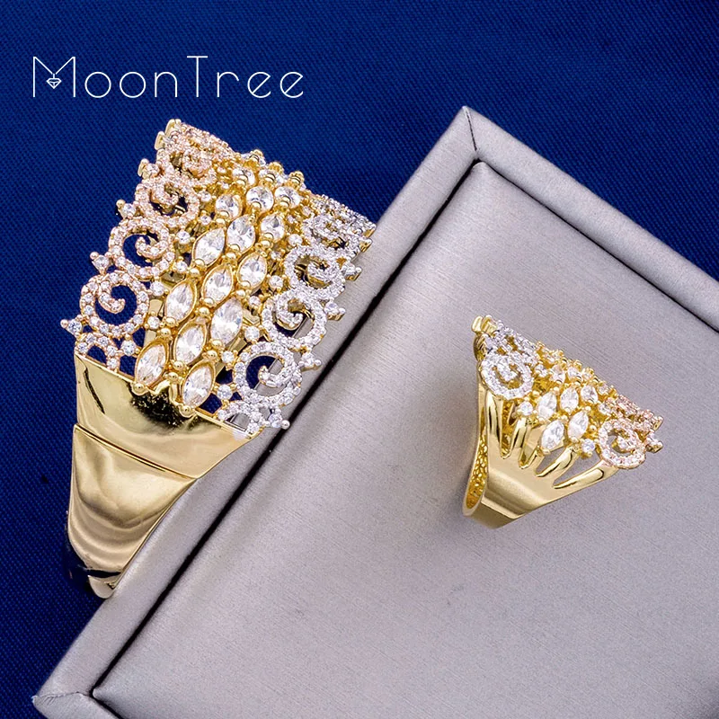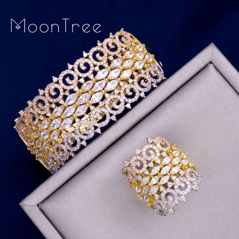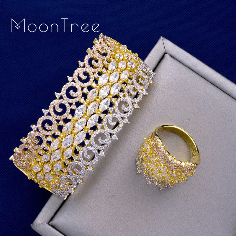 (23% Off) Купить MoonTree, роскошный, большой, нежный, 3 тона, смешанный, фианит, медь, геометрия, для вечеринки, свадьбы, Саудовской Аравии, Арабский Браслет в дуба... Цена Дешево