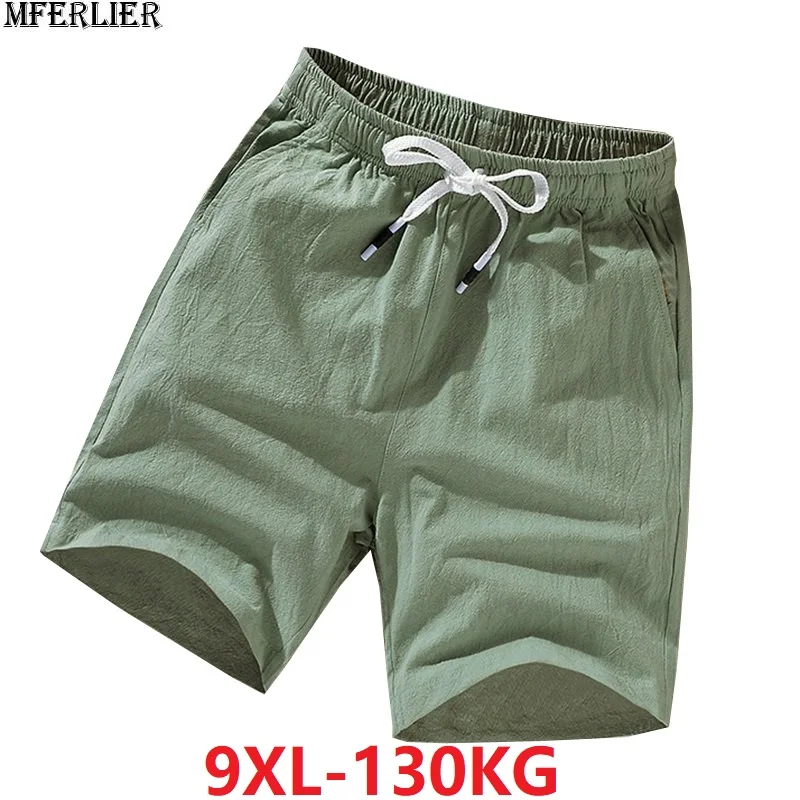 Special Offer Летние мужские льняные хлопковые шорты в китайском стиле больших размеров 6XL 7XL 8XL 9XL, повседневные мужские домашние Стрейчевые шорты зелено... Discount 25% Today!