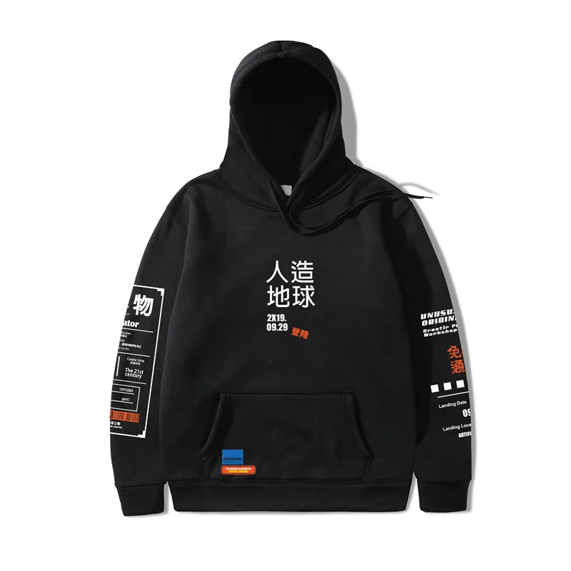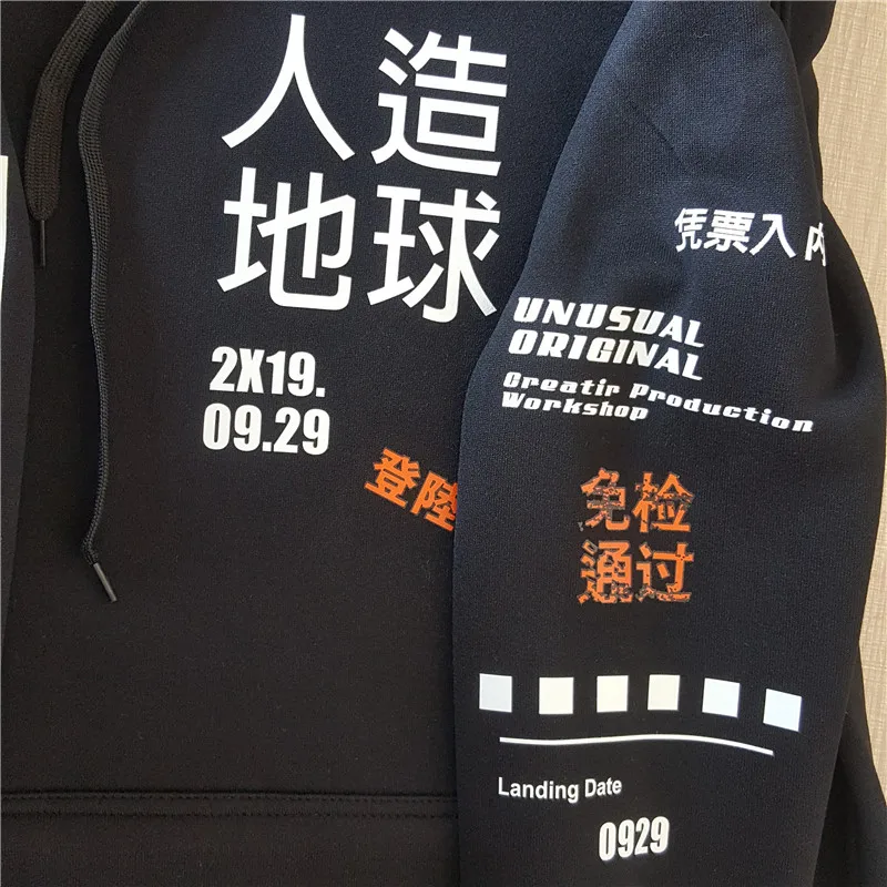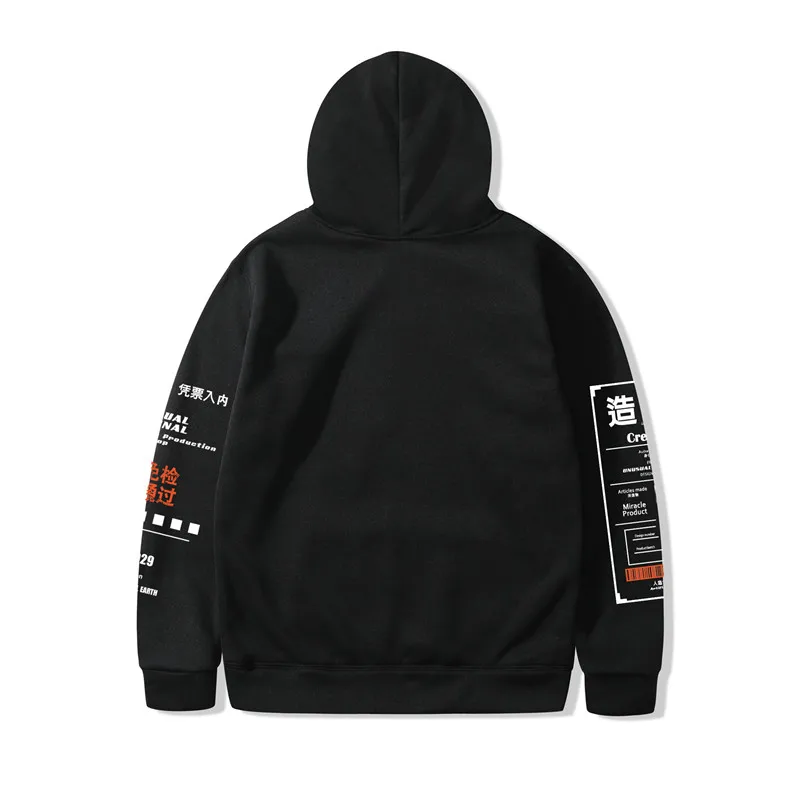 Product Name: 2019 Япония Харадзюку толстовка с капюшоном Графический граффити кандзи уличная одежда худи в стиле хип хоп хлопок осень зима флис пуловер 3XL