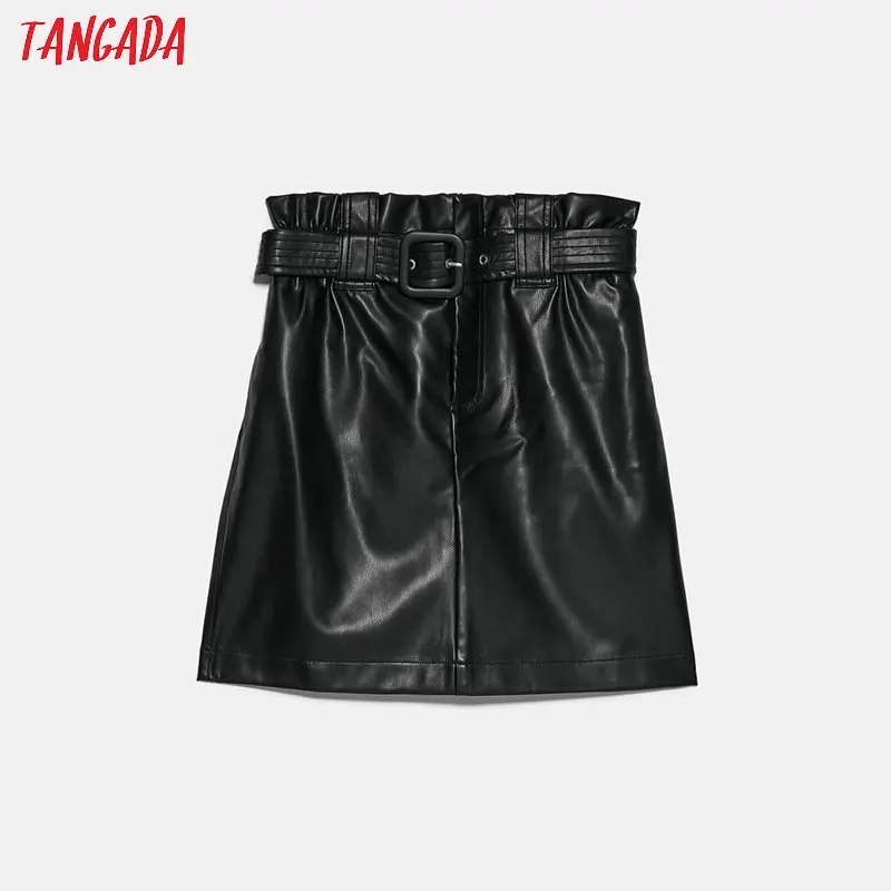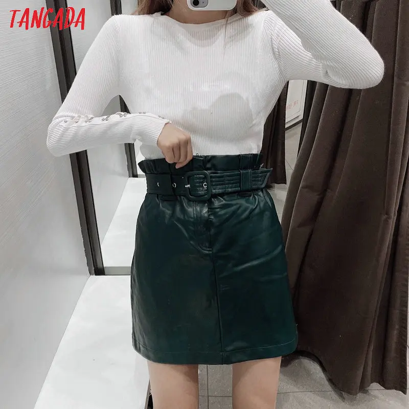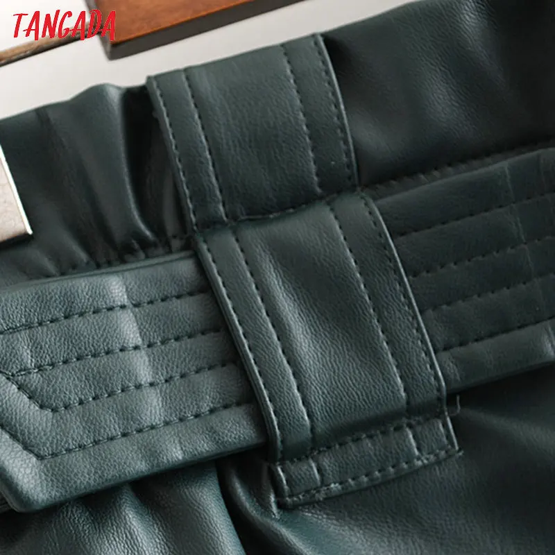 Special Offer Tangada Женская шикарная искусственная кожа зеленая мини юбка с поясом на молнии винтажные женские стильные повседневные юбки mujer 3H223 Discount 30% Today!