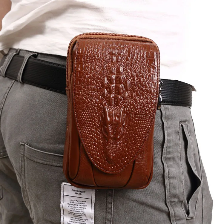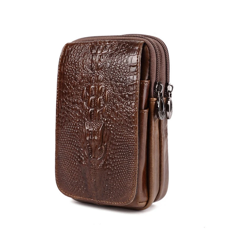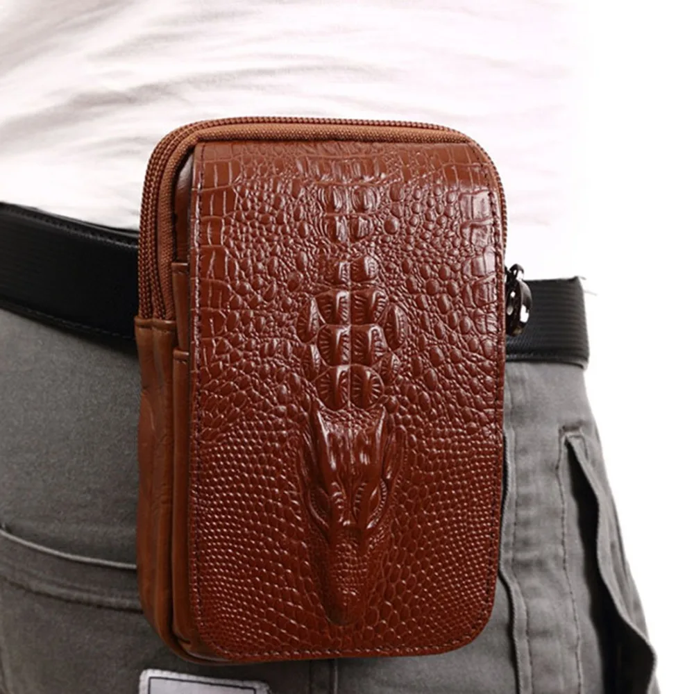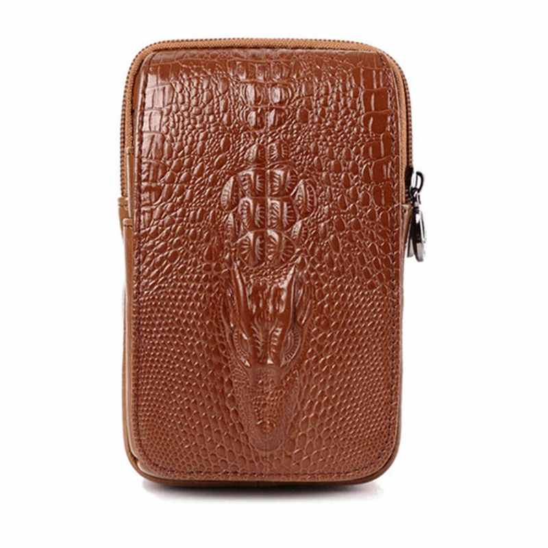 Product Name: Высокое качество, мужской чехол из натуральной кожи для мобильного телефона, поясная сумка, винтажный кошелек с крокодиловым лицевым покры...