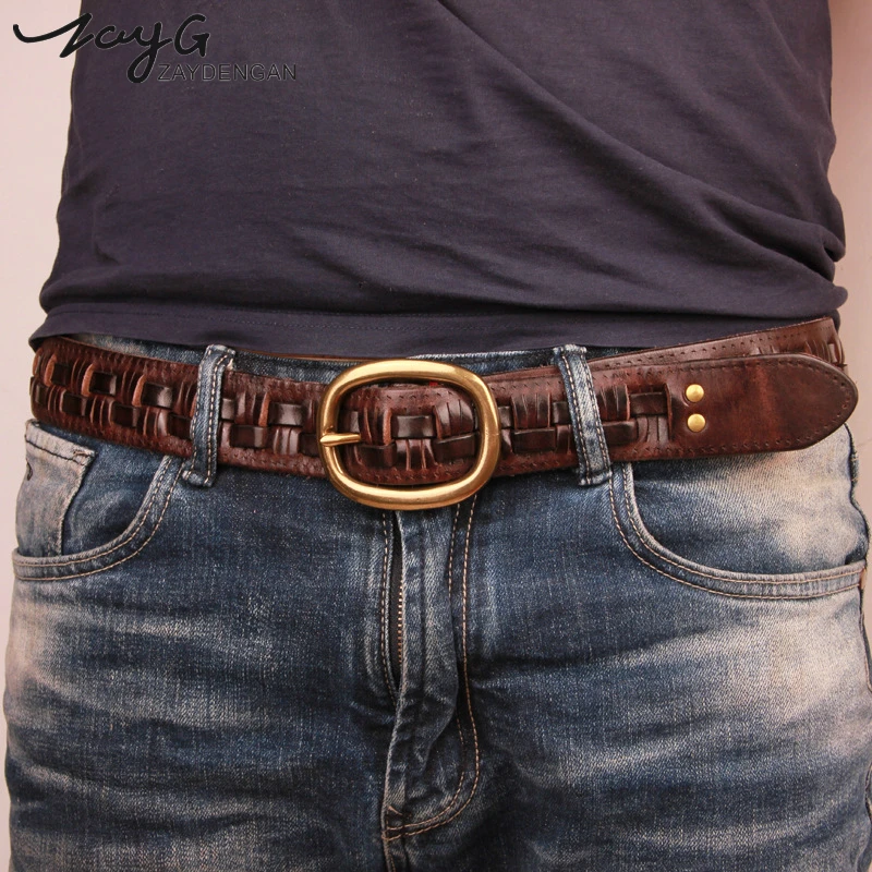 (32% Off) Купить Новый мужской ремень ZAYG, модные мужские ремни, Роскошный Кожаный Плетеный из натуральной коровьей кожи, джинсы, широкий пояс,... Продажа Дешево