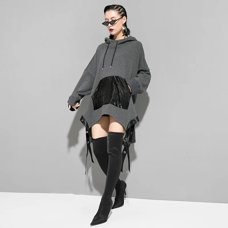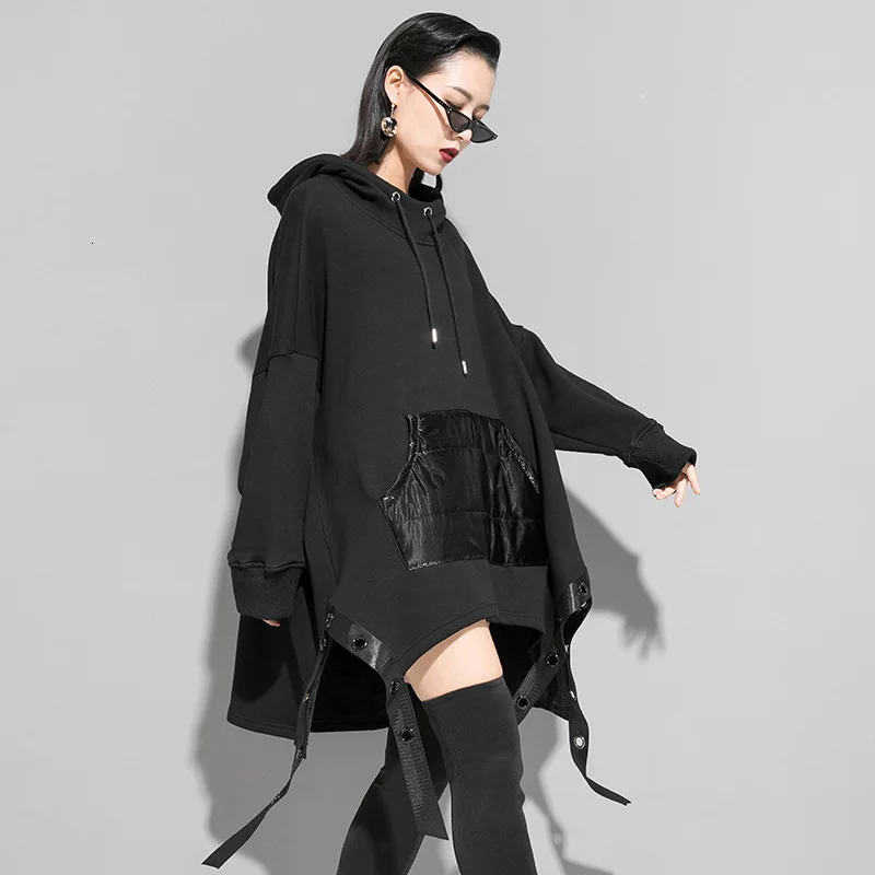 Special Offer [EAM] свободный ассиметричный свитер с лентой выше размера d, новинка, Женская толстовка с капюшоном и длинным рукавом большого размера, модна... Discount 33% Today!