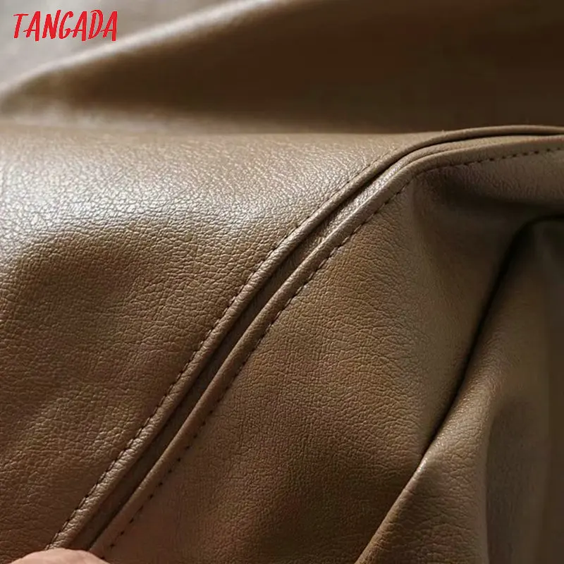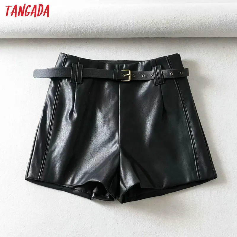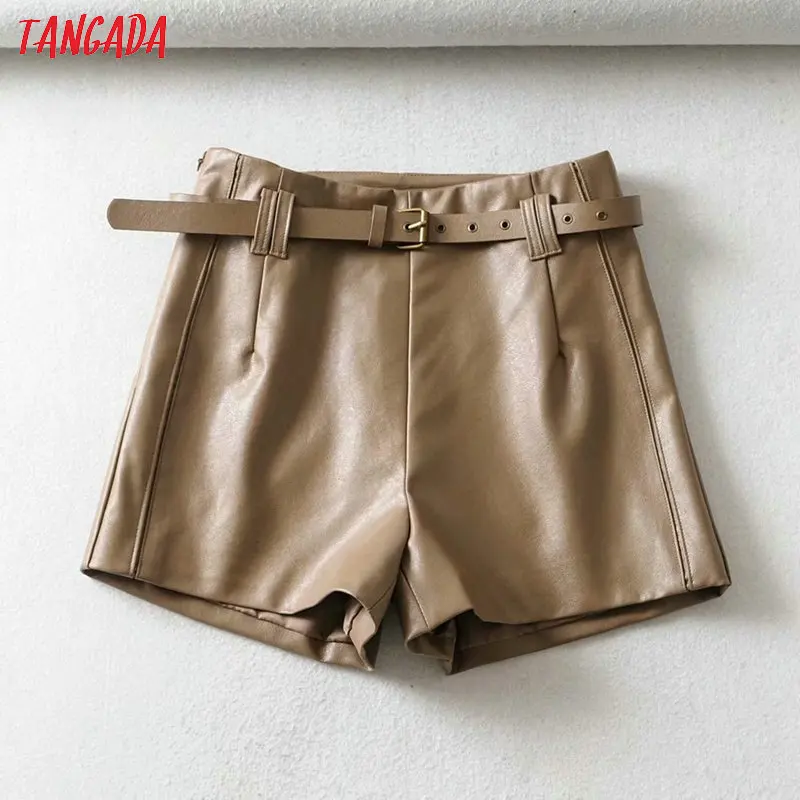 Product Name: Tangada, Женская коричневая юбка из искусственной кожи, шорты с ремнем на молнии, женские повседневные шорты с высокой талией, 1Y07